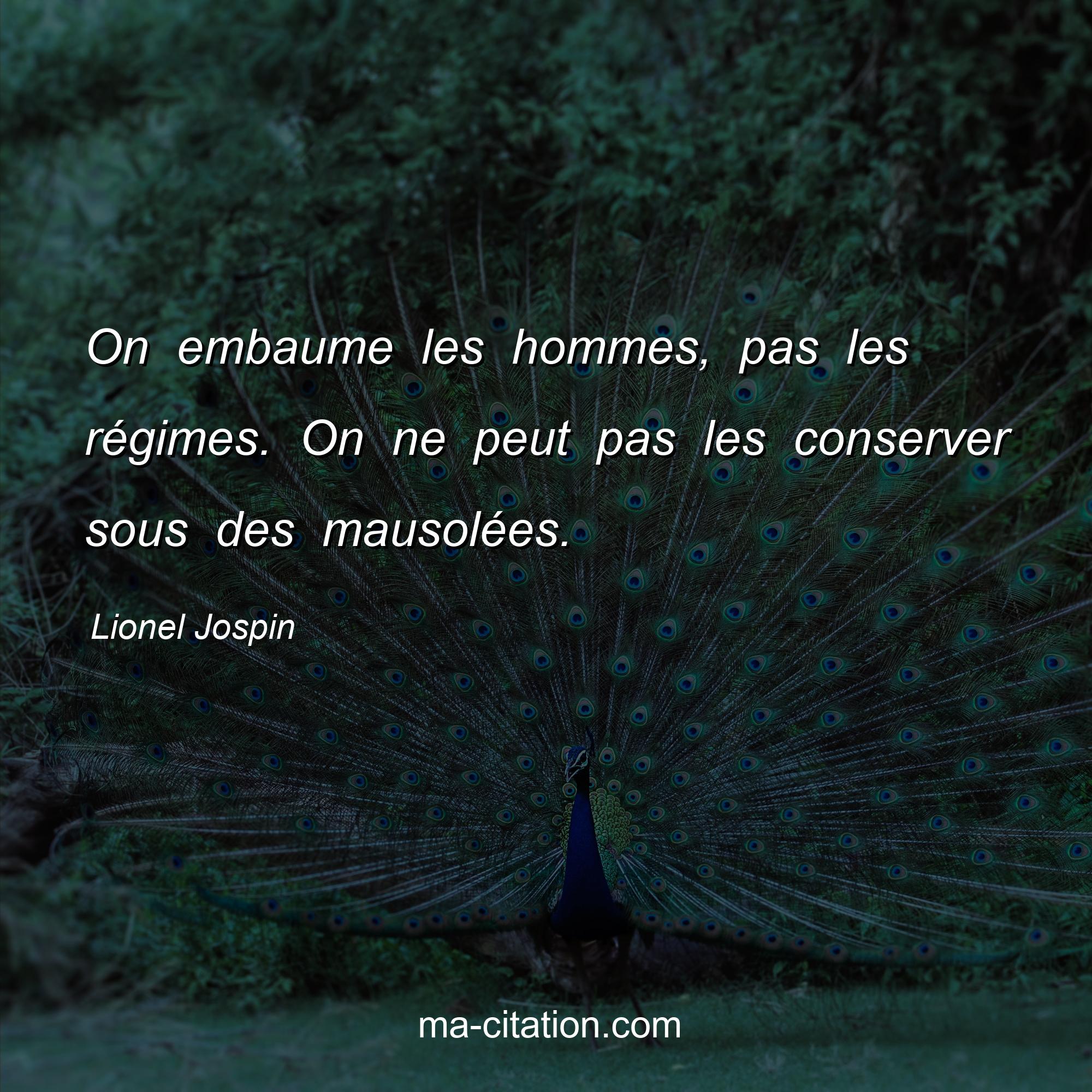 Citation sur la vie de Lionel Jospin :On embaume les hommes, pas les régimes. On ne peut pas les conserver sous des mausolées.