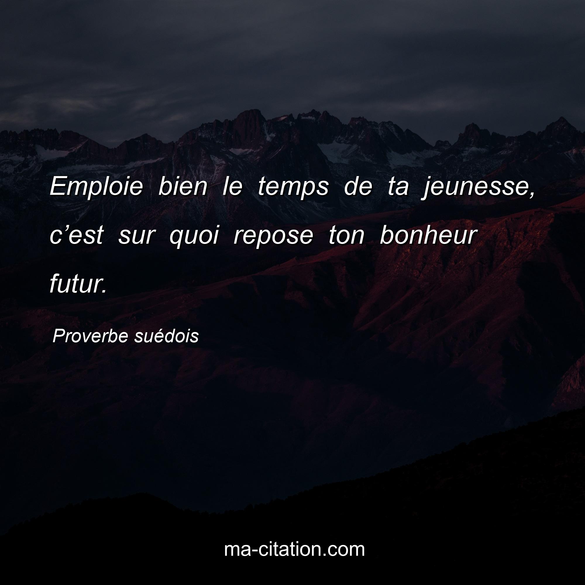 Proverbe suédois sur la vie :Emploie bien le temps de ta jeunesse, c’est sur quoi repose ton bonheur futur.