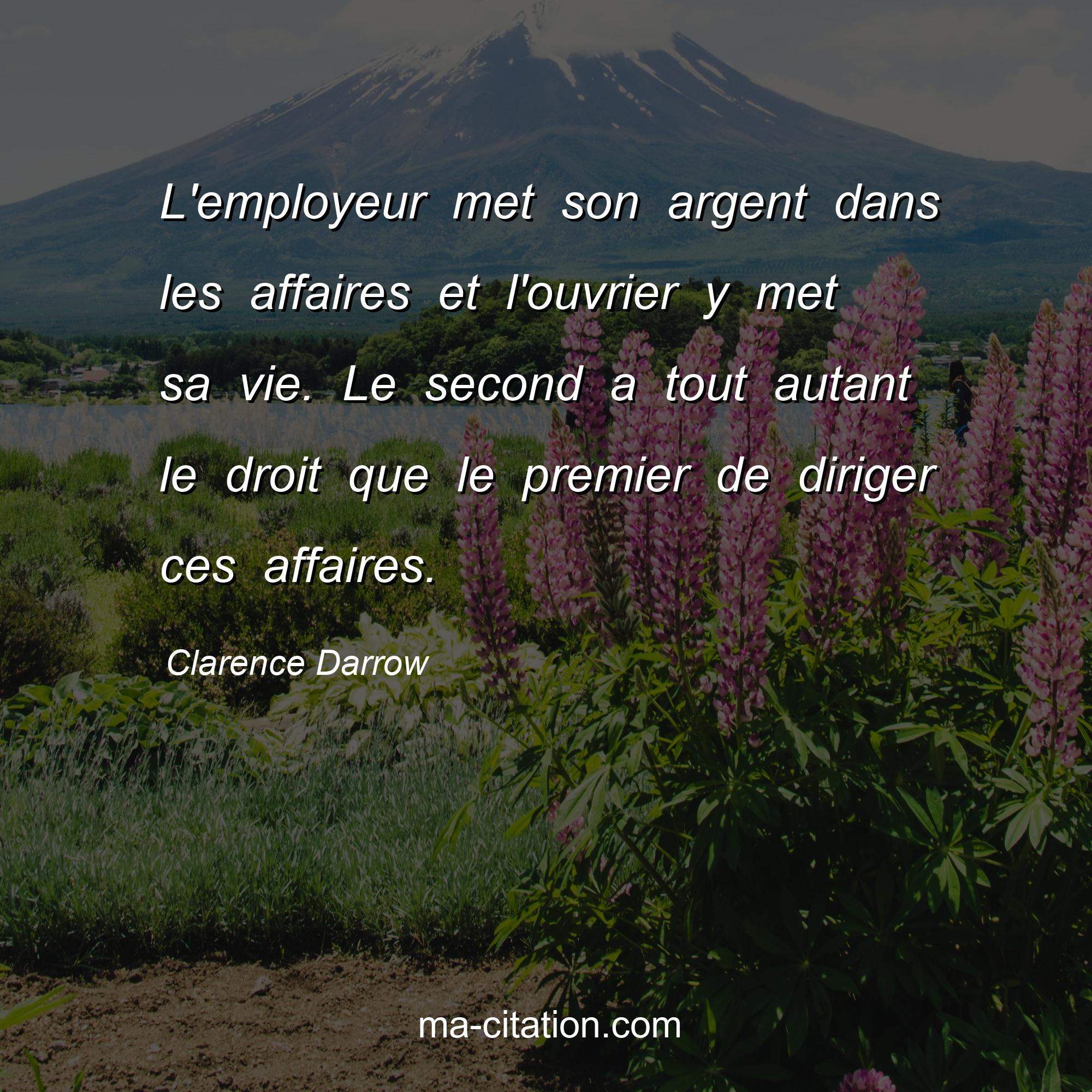 Citation sur la vie de Clarence Darrow :L'employeur met son argent dans les affaires et l'ouvrier y met sa vie. Le second a tout autant le droit que le premier de diriger ces affaires.
