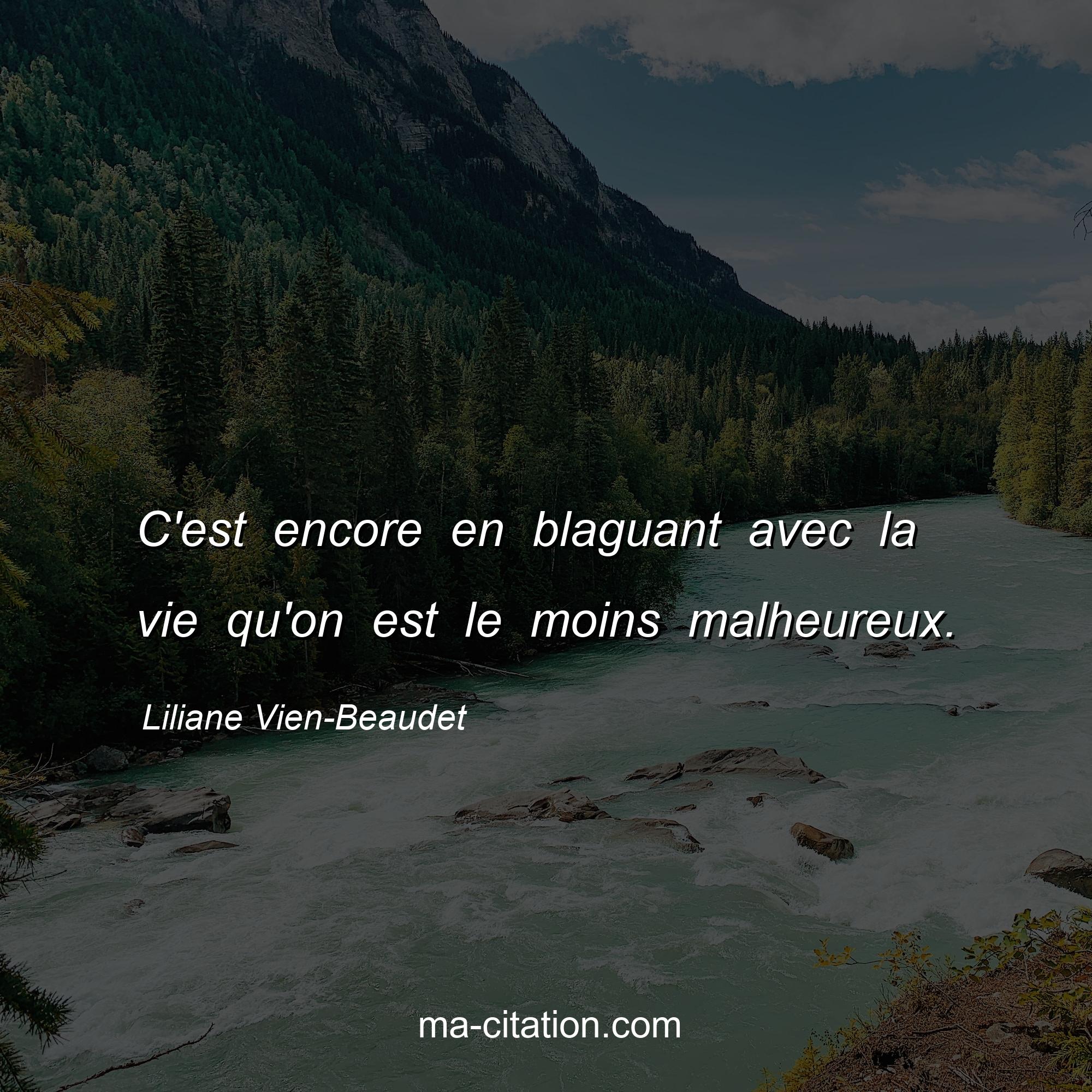 Liliane Vien-Beaudet est l'auteur de la citation sur la vie "C'est encore en blaguant avec la vie qu'on est le moins malheureux.".