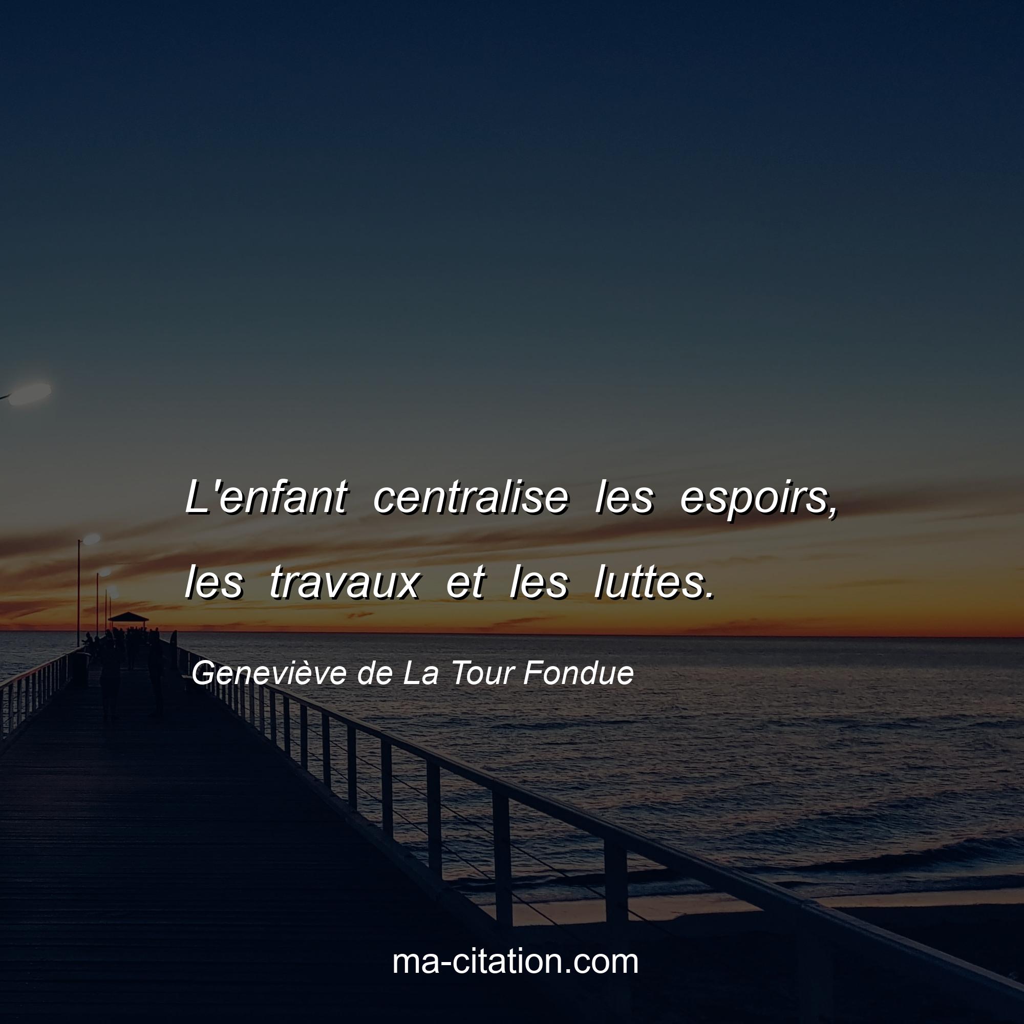 Geneviève de La Tour Fondue est l'auteur de la citation sur la vie "L'enfant centralise les espoirs, les travaux et les luttes.".