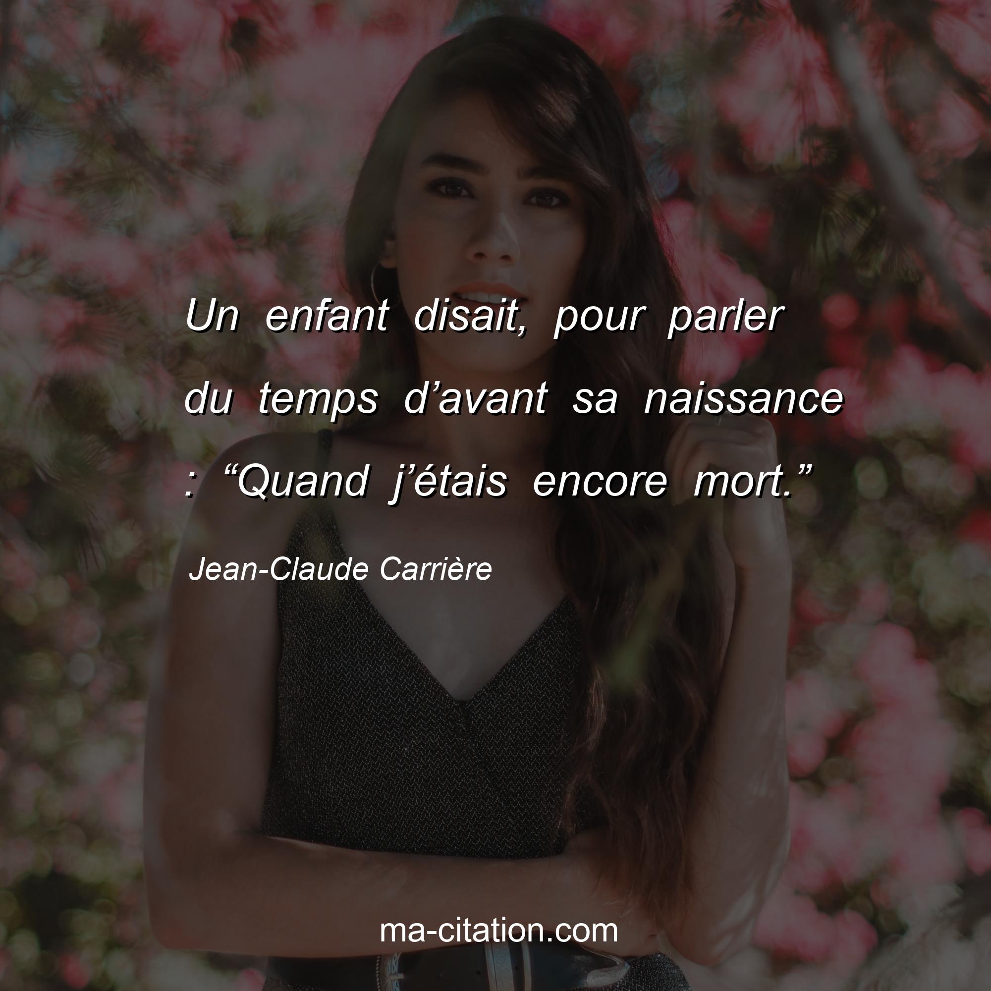 Citation sur la vie de Jean-Claude Carrière :Un enfant disait, pour parler du temps d’avant sa naissance : “Quand j’étais encore mort.â€