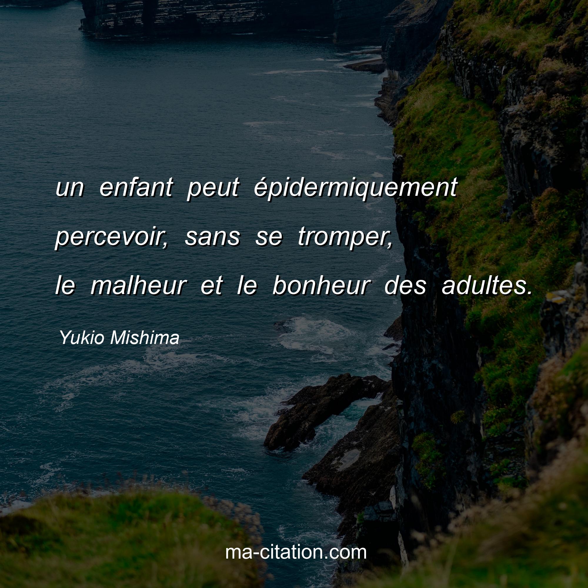 Yukio Mishima est l'auteur de la citation sur la vie "un enfant peut épidermiquement percevoir, sans se tromper, le malheur et le bonheur des adultes.".