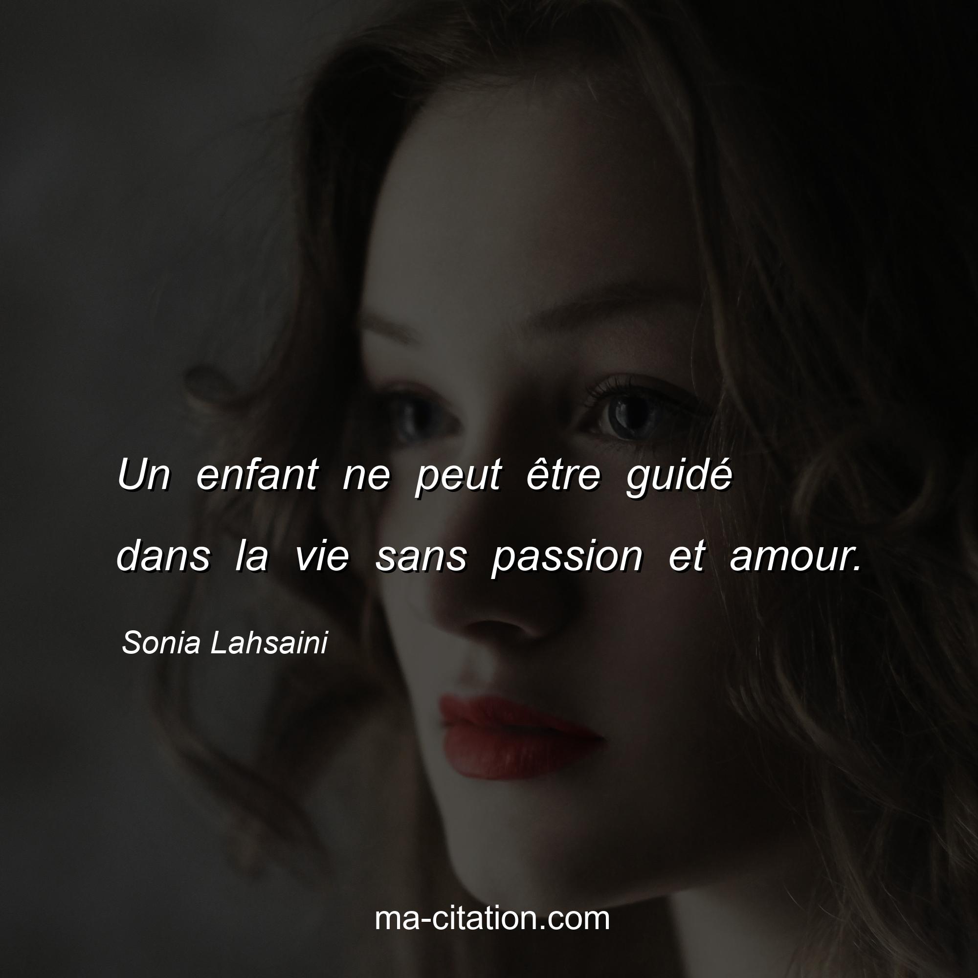 Sonia Lahsaini est l'auteur de la citation sur la vie "Un enfant ne peut être guidé dans la vie sans passion et amour.".