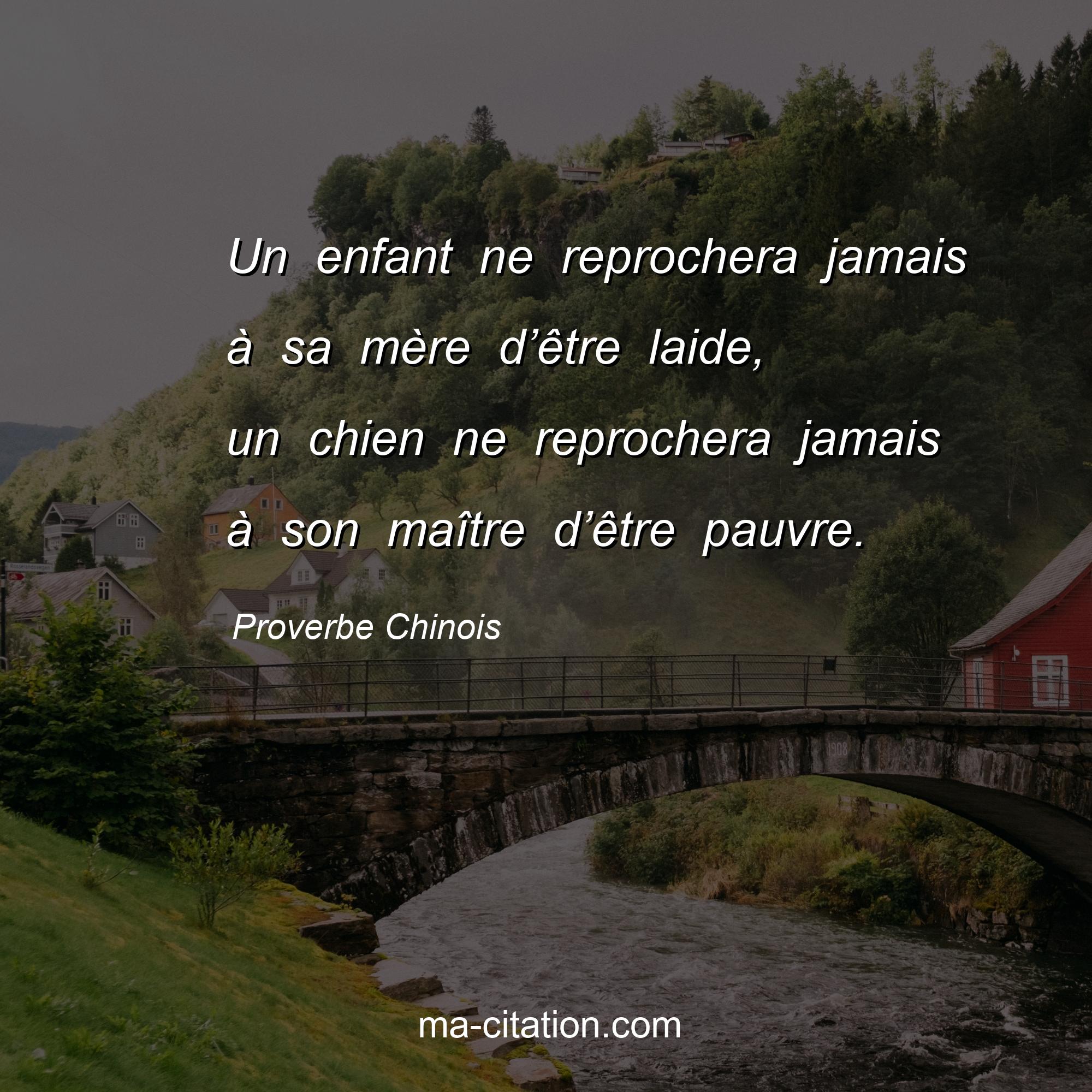Proverbe Chinois sur la vie :Un enfant ne reprochera jamais à sa mère d’être laide, un chien ne reprochera jamais à son maître d’être pauvre.