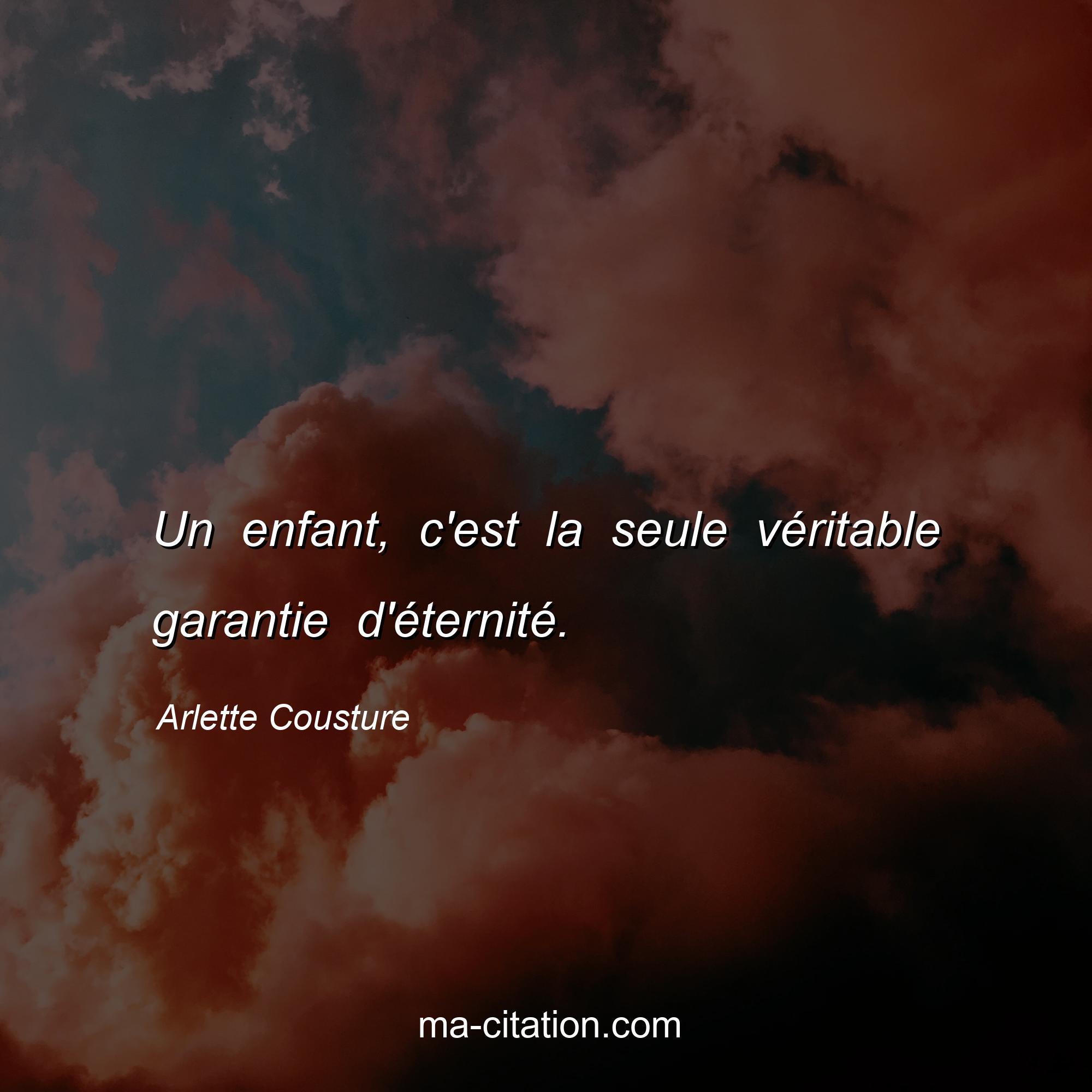Arlette Cousture est l'auteur de la citation sur la vie "Un enfant, c'est la seule véritable garantie d'éternité.".