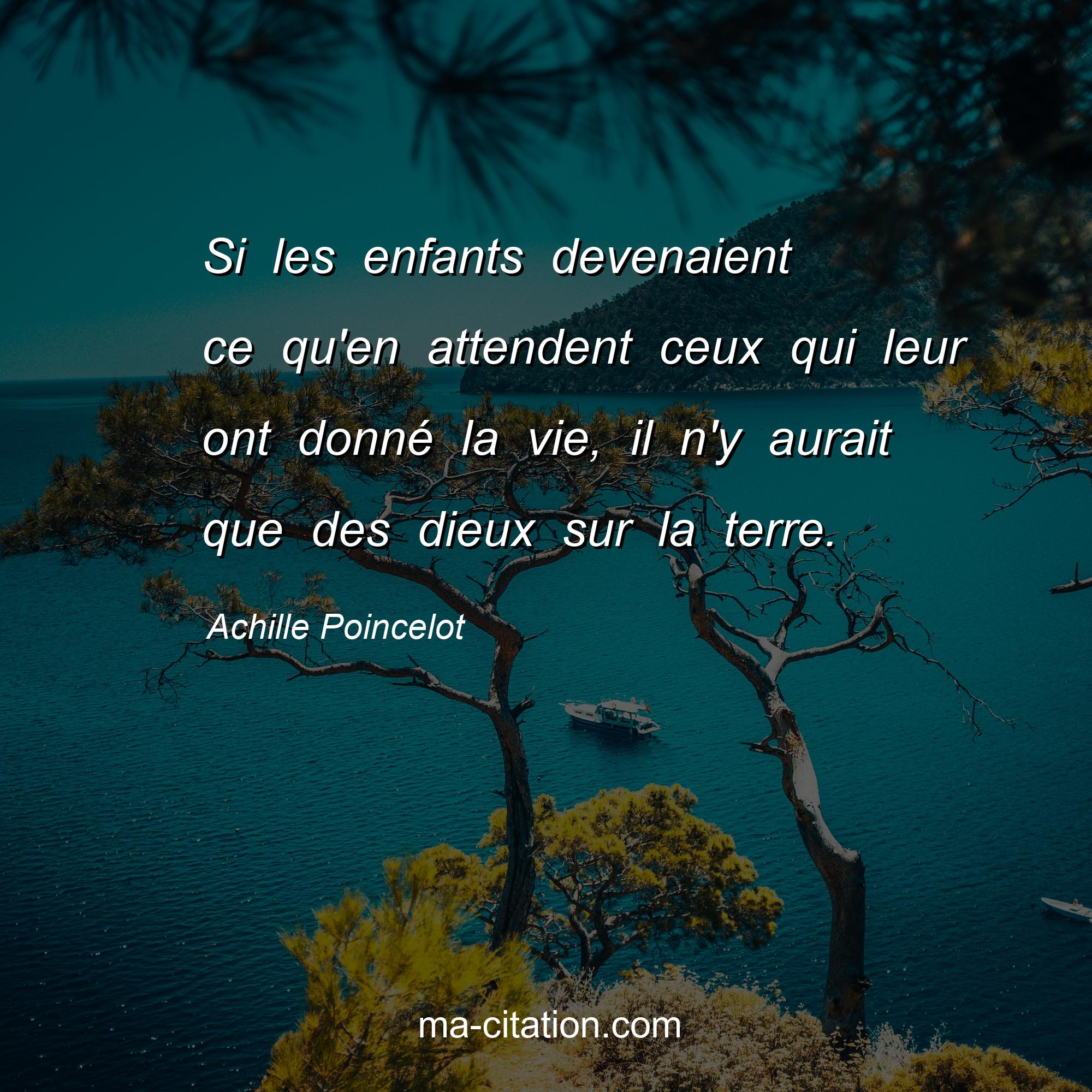 Achille Poincelot est l'auteur de la citation sur la vie "Si les enfants devenaient ce qu'en attendent ceux qui leur ont donné la vie, il n'y aurait que des dieux sur la terre.".