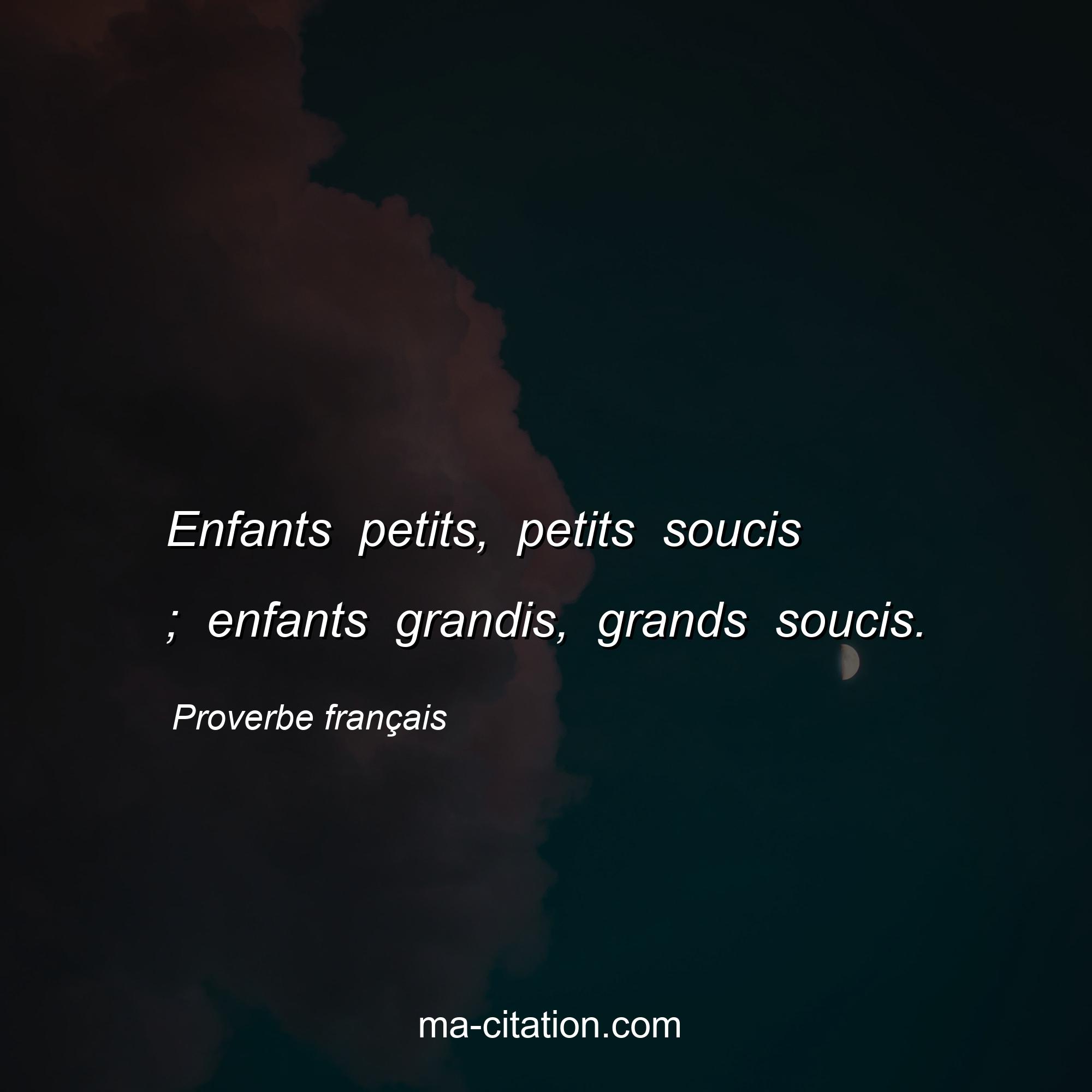 Proverbe français sur la vie :Enfants petits, petits soucis ; enfants grandis, grands soucis.