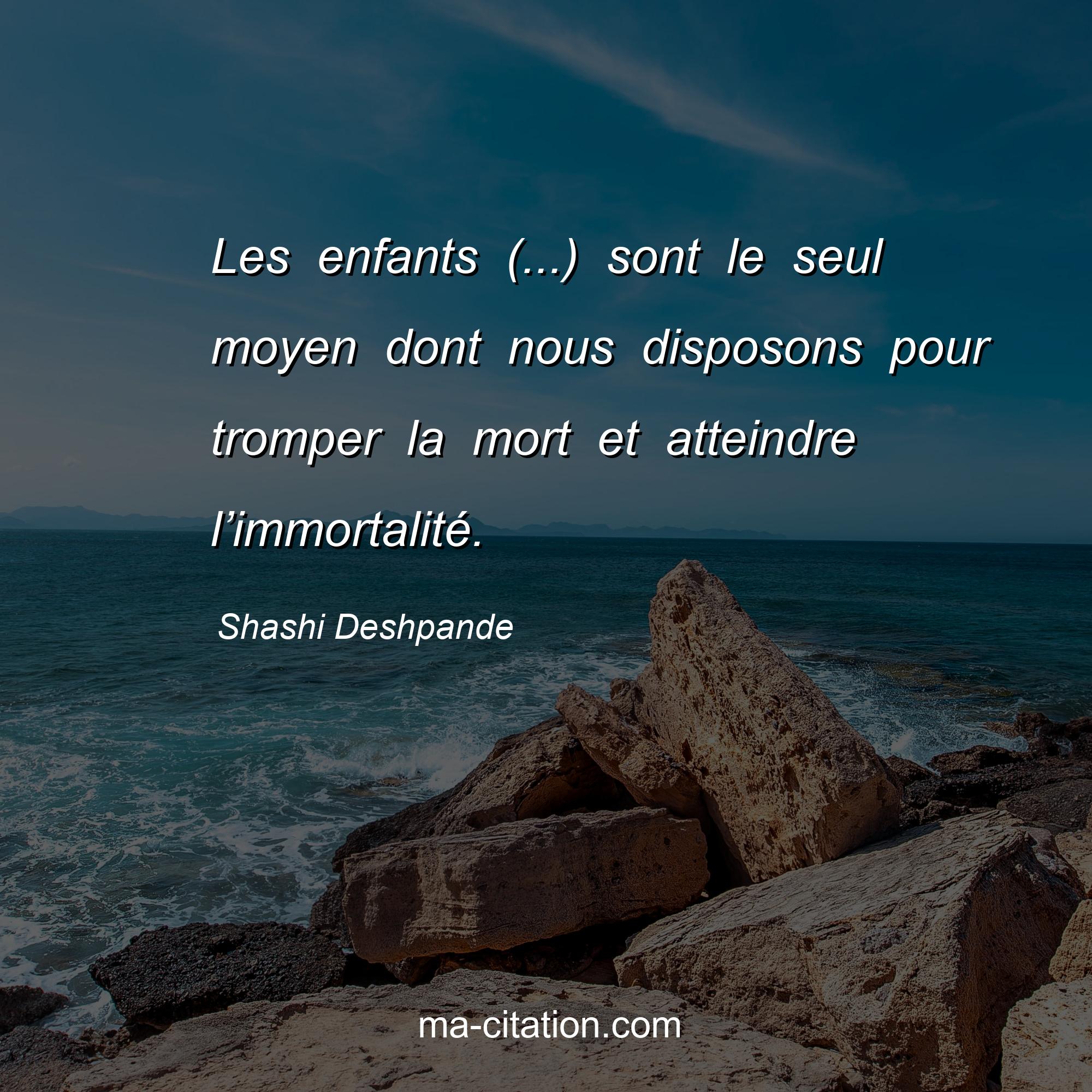 Citation sur la vie de Shashi Deshpande :Les enfants (...) sont le seul moyen dont nous disposons pour tromper la mort et atteindre l’immortalité.