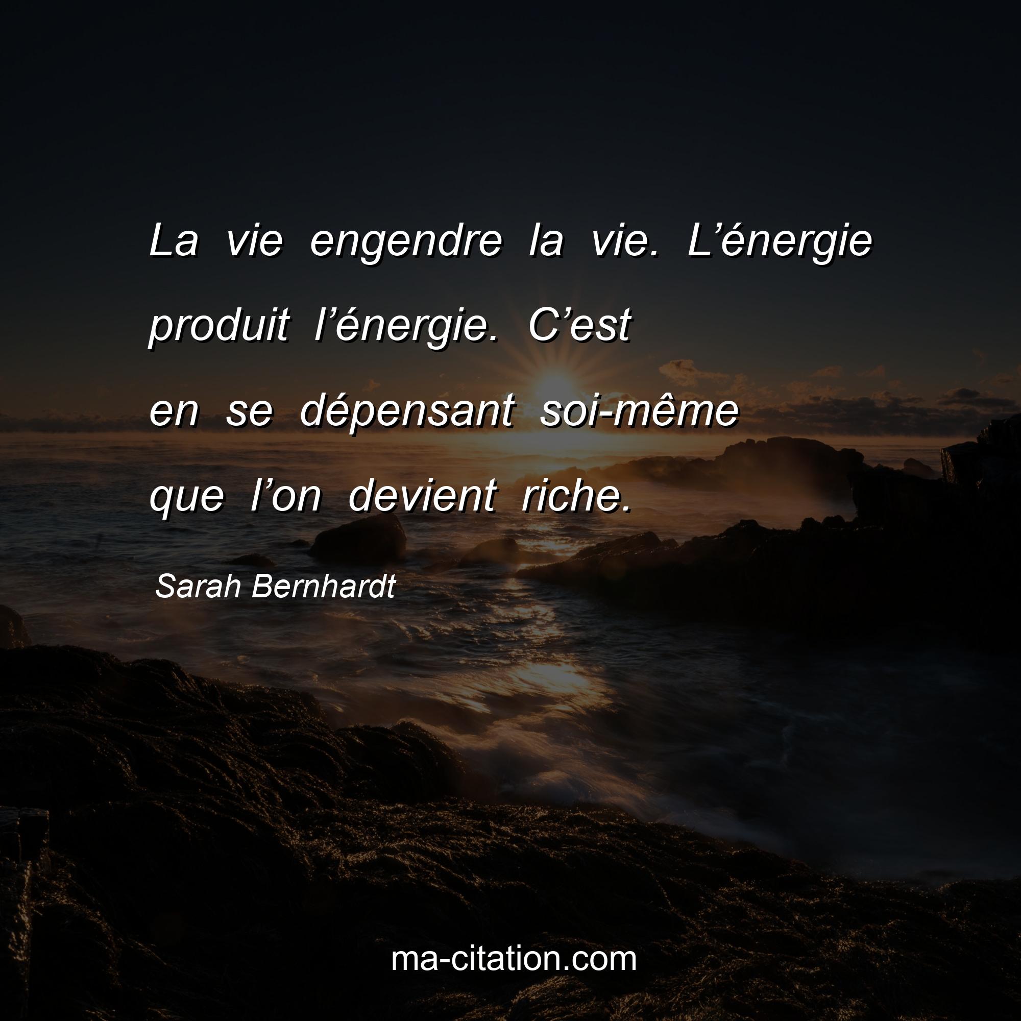 Citation sur la vie de Sarah Bernhardt :La vie engendre la vie. L’énergie produit l’énergie. C’est en se dépensant soi-même que l’on devient riche.