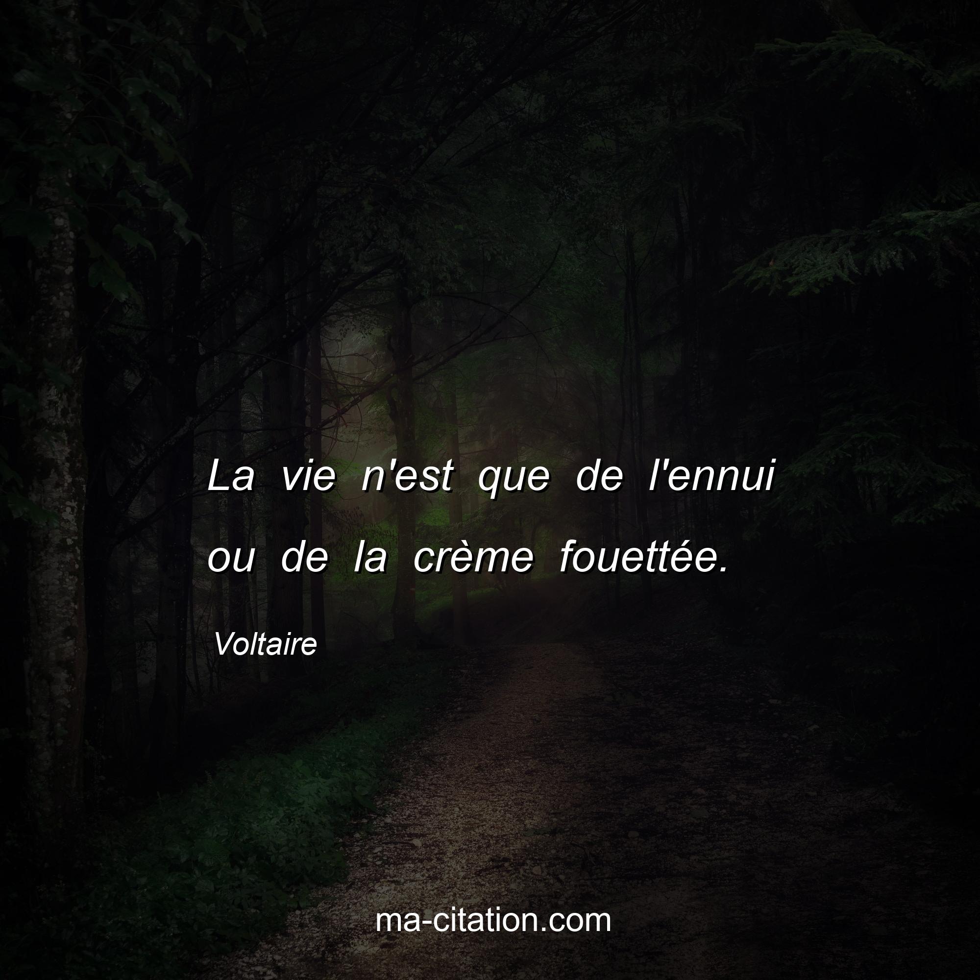 Citation sur la vie de Voltaire :La vie n'est que de l'ennui ou de la crème fouettée.