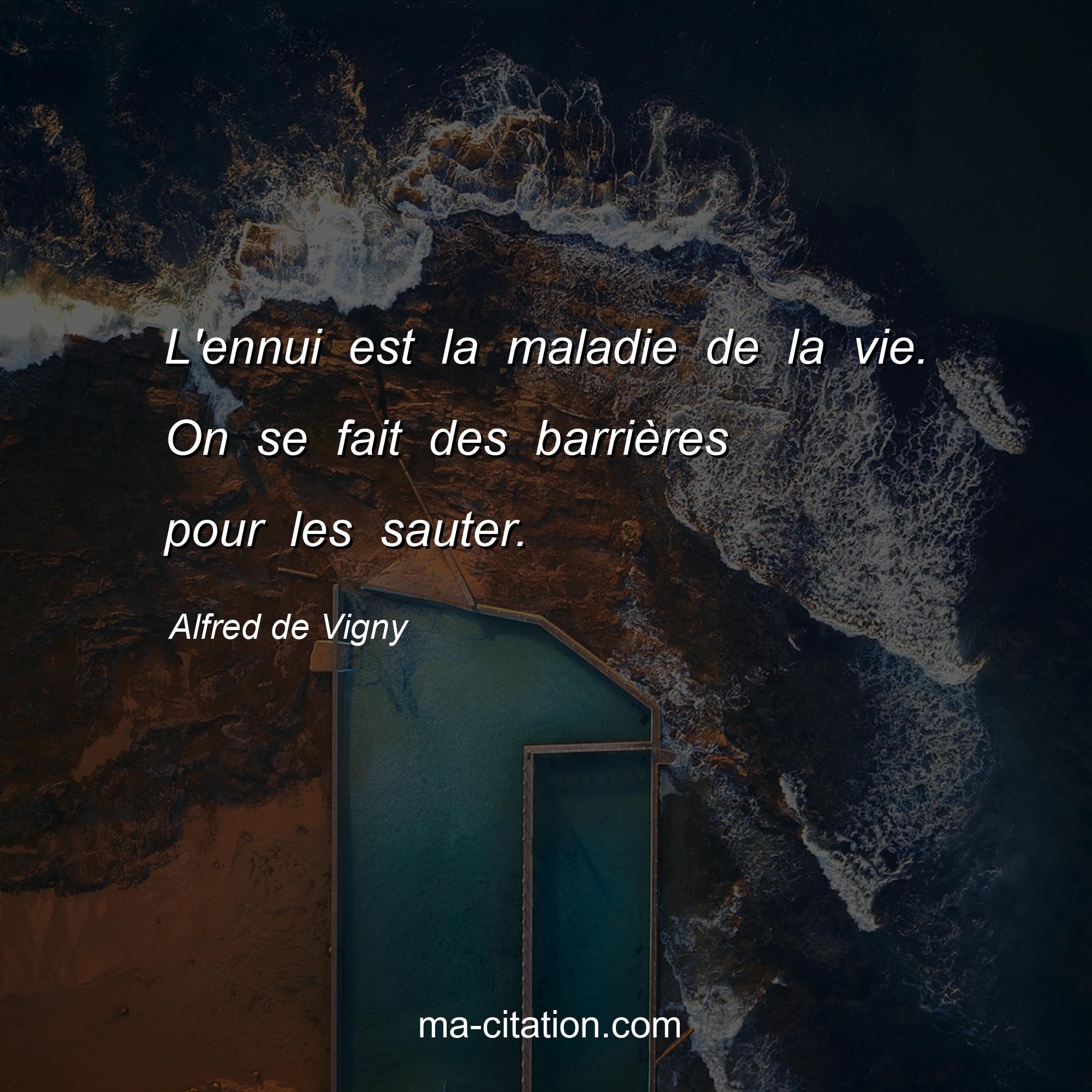 Citation sur la vie d'Alfred de Vigny :L'ennui est la maladie de la vie. On se fait des barrières pour les sauter.