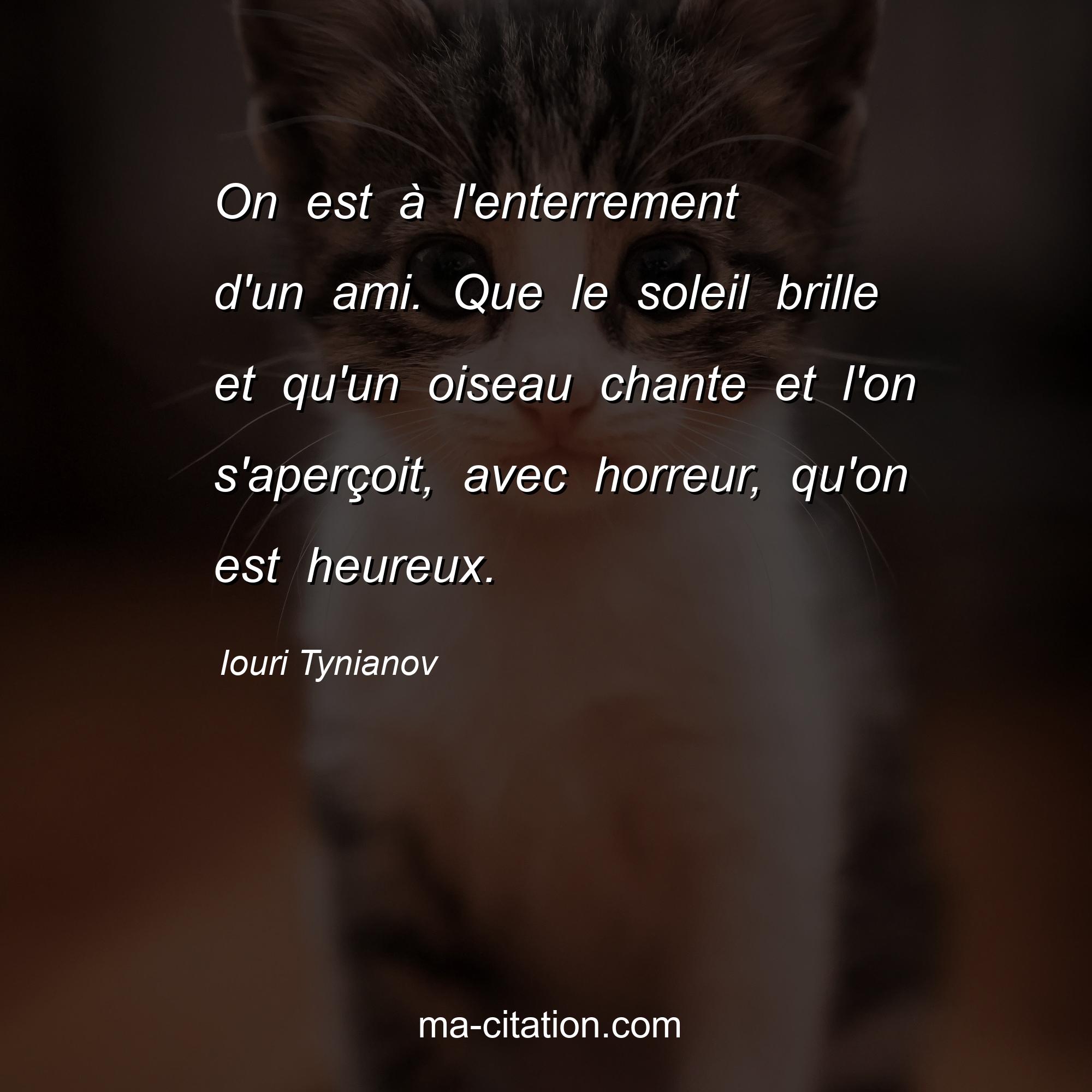 Citation sur la vie d'Iouri Tynianov :On est à l'enterrement d'un ami. Que le soleil brille et qu'un oiseau chante et l'on s'aperçoit, avec horreur, qu'on est heureux.