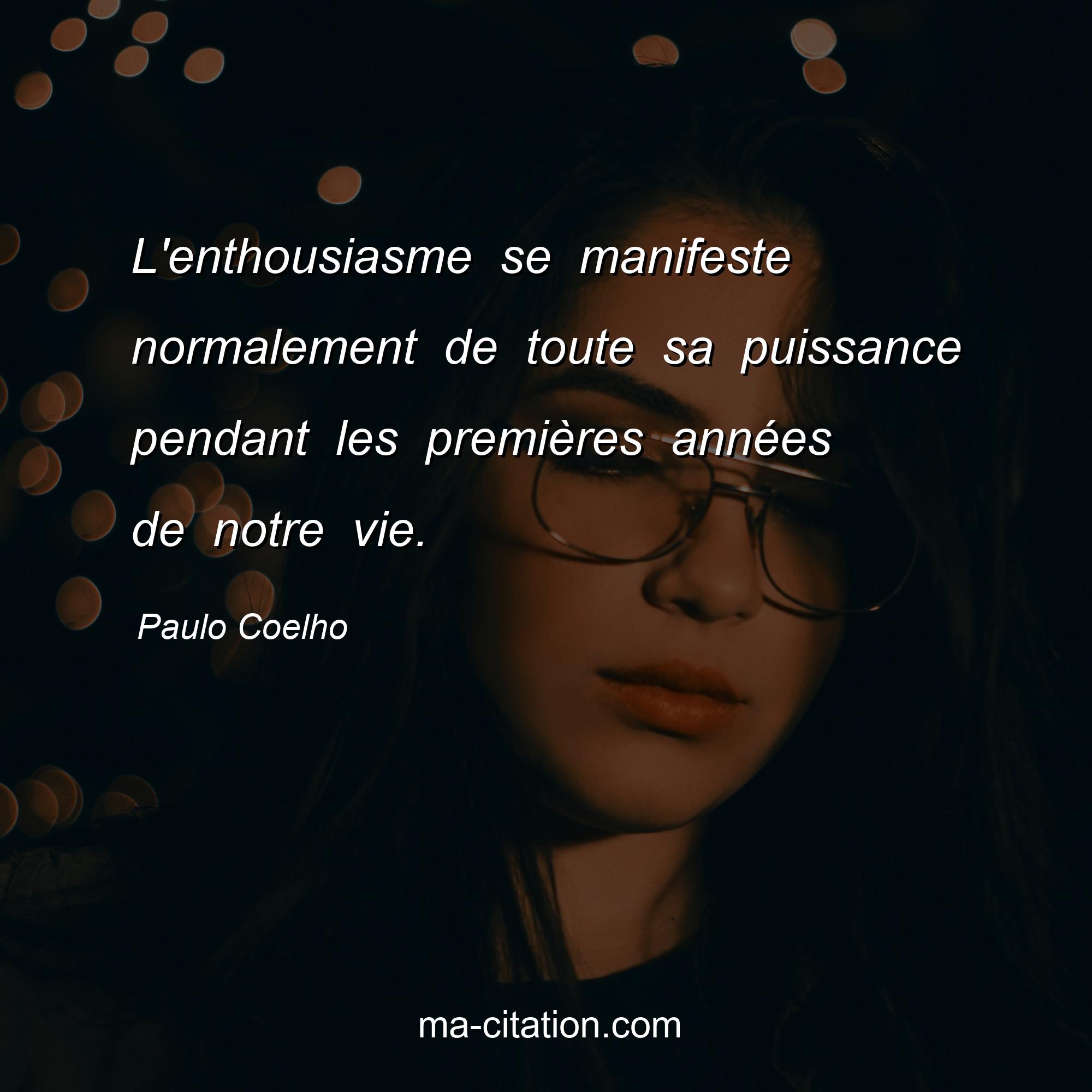 Citation sur la vie de Paulo Coelho :L'enthousiasme se manifeste normalement de toute sa puissance pendant les premières années de notre vie.