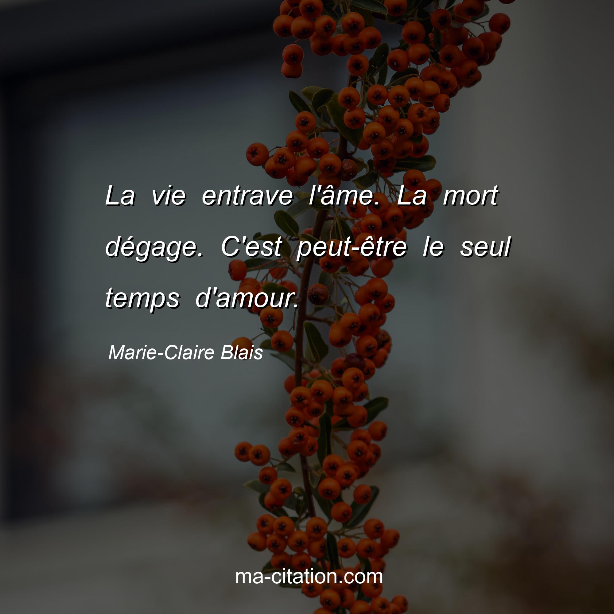 Citation sur la vie de Marie-Claire Blais :La vie entrave l'âme. La mort dégage. C'est peut-être le seul temps d'amour.