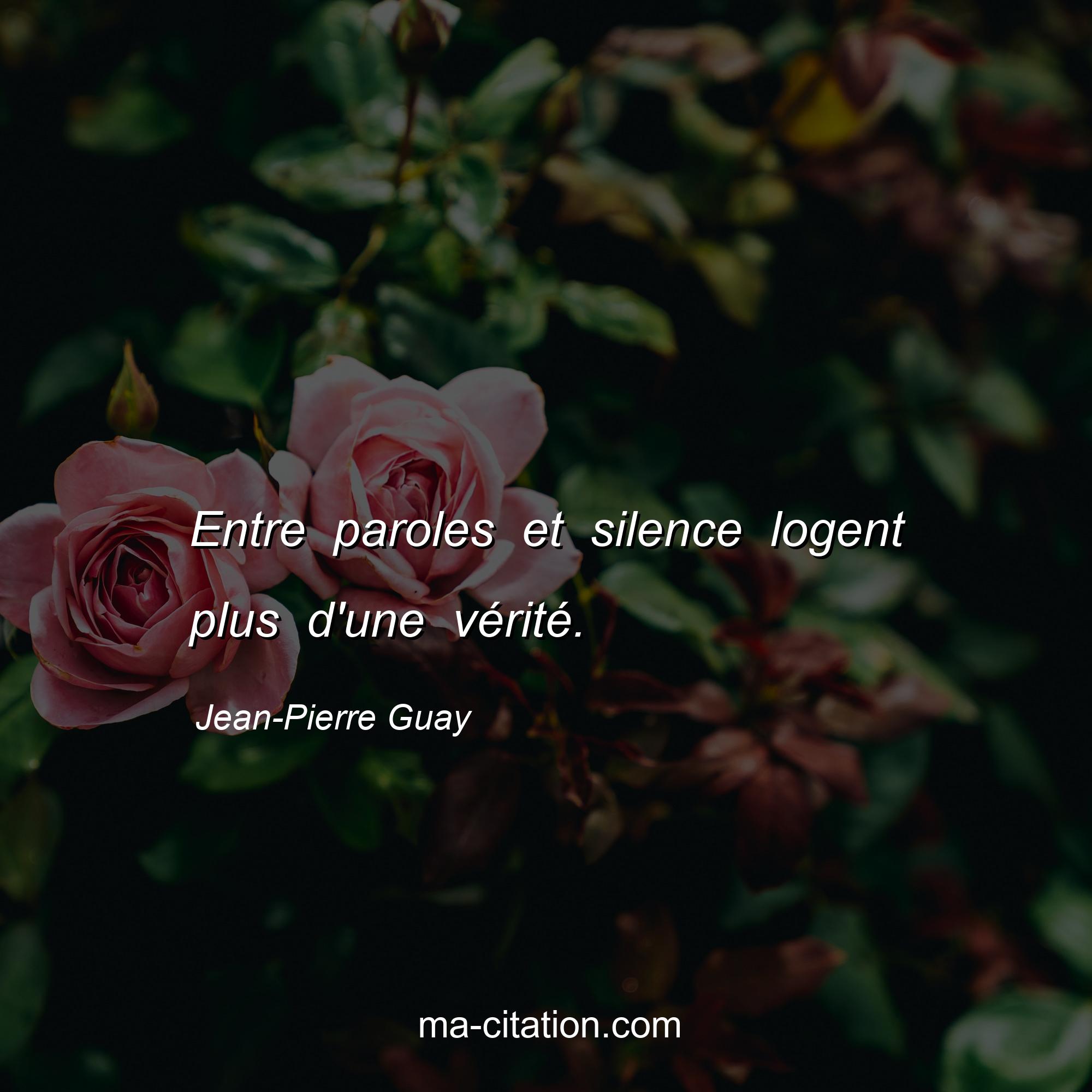 Jean-Pierre Guay est l'auteur de la citation sur la vie "Entre paroles et silence logent plus d'une vérité.".