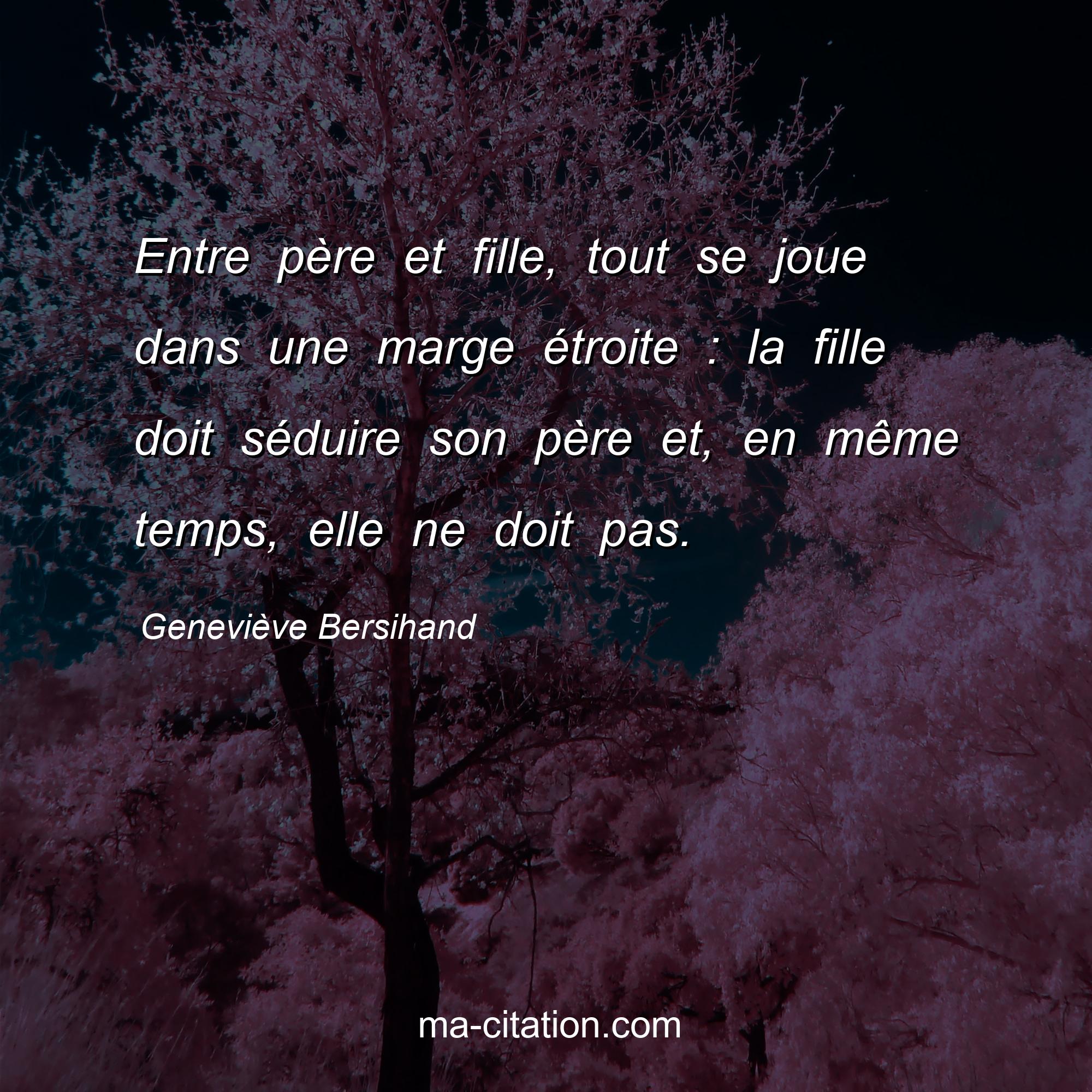 Citation sur la vie de Geneviève Bersihand :Entre père et fille, tout se joue dans une marge étroite : la fille doit séduire son père et, en même temps, elle ne doit pas.