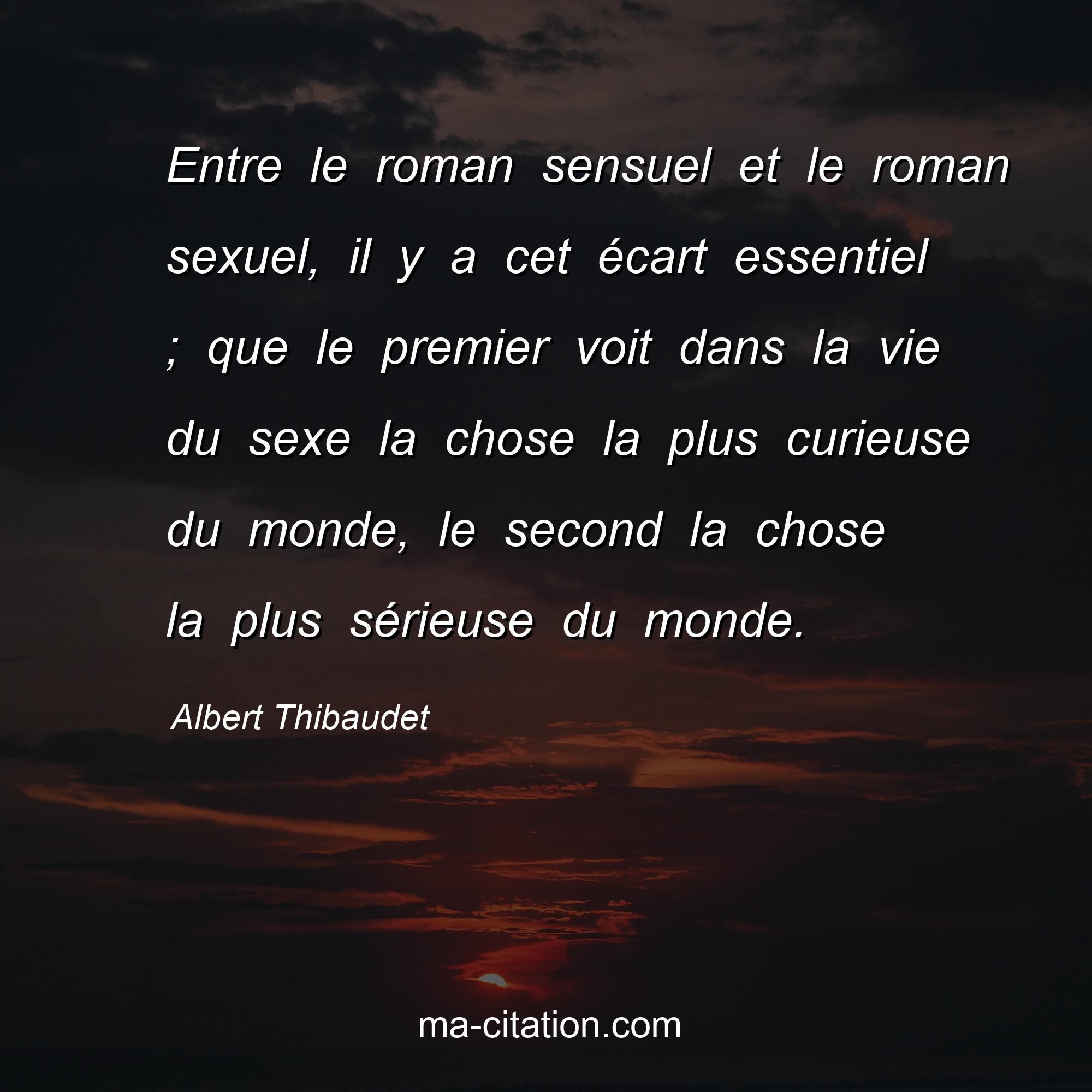 Citation sur la vie d'Albert Thibaudet :Entre le roman sensuel et le roman sexuel, il y a cet écart essentiel ; que le premier voit dans la vie du sexe la chose la plus curieuse du monde, le second la chose la plus sérieuse du monde.