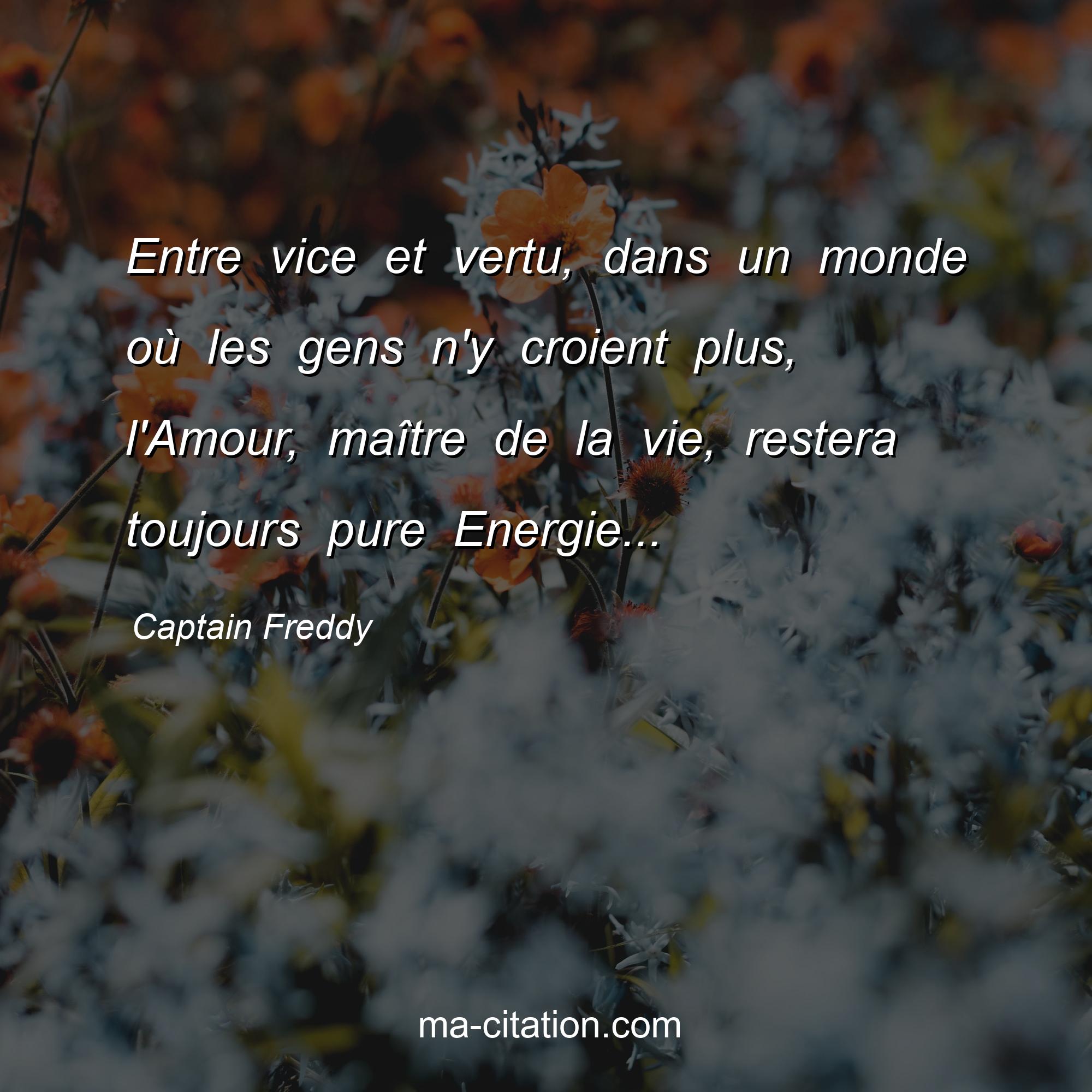 Captain Freddy est l'auteur de la citation sur la vie "Entre vice et vertu, dans un monde où les gens n'y croient plus, l'Amour, maître de la vie, restera toujours pure Energie...".