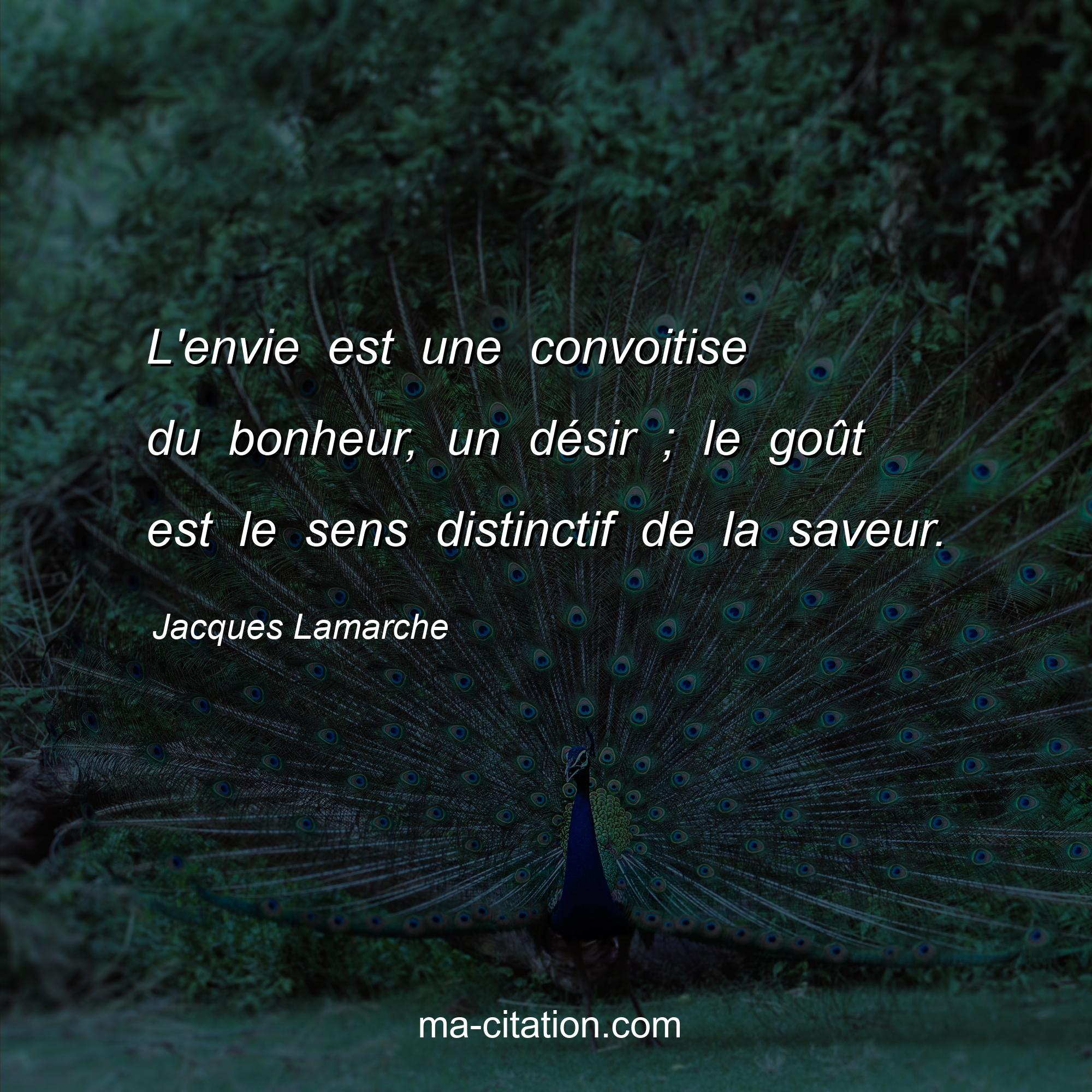 Citation sur la vie de Jacques Lamarche :L'envie est une convoitise du bonheur, un désir ; le goût est le sens distinctif de la saveur.