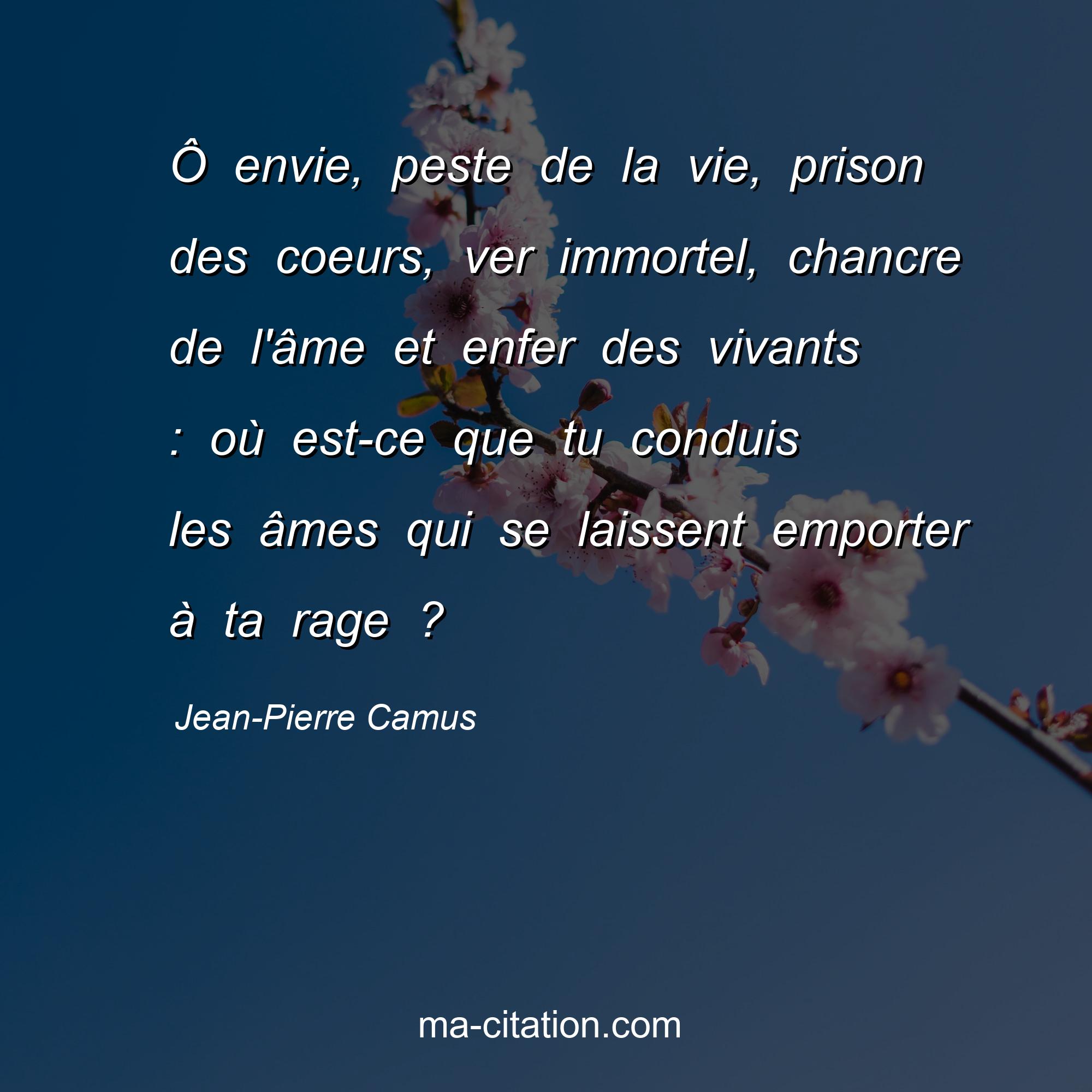Citation sur la vie de Jean-Pierre Camus :Ô envie, peste de la vie, prison des coeurs, ver immortel, chancre de l'âme et enfer des vivants : où est-ce que tu conduis les âmes qui se laissent emporter à ta rage ?