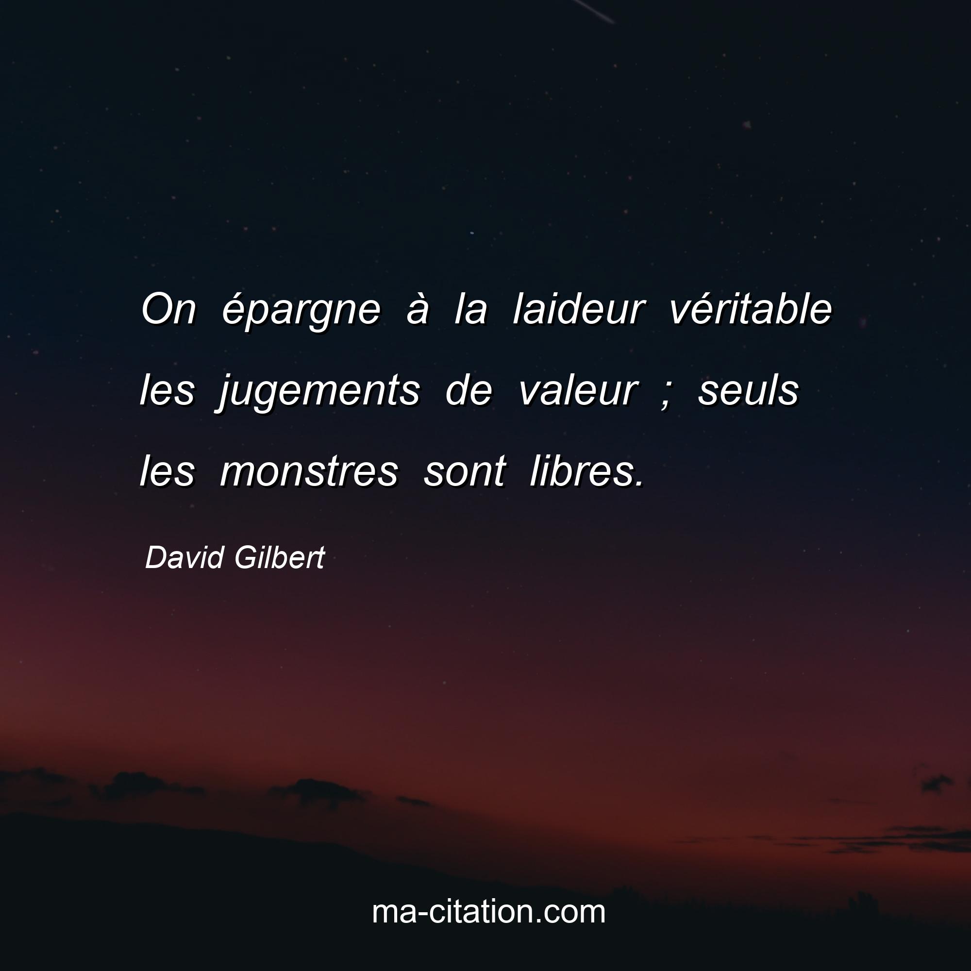 Citation sur la vie de David Gilbert :On épargne à la laideur véritable les jugements de valeur ; seuls les monstres sont libres.