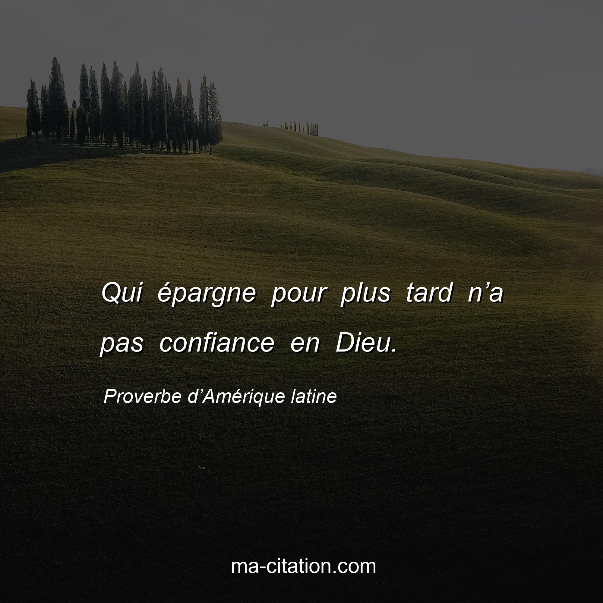 Proverbe d’Amérique latine sur la vie :Qui épargne pour plus tard n’a pas confiance en Dieu.