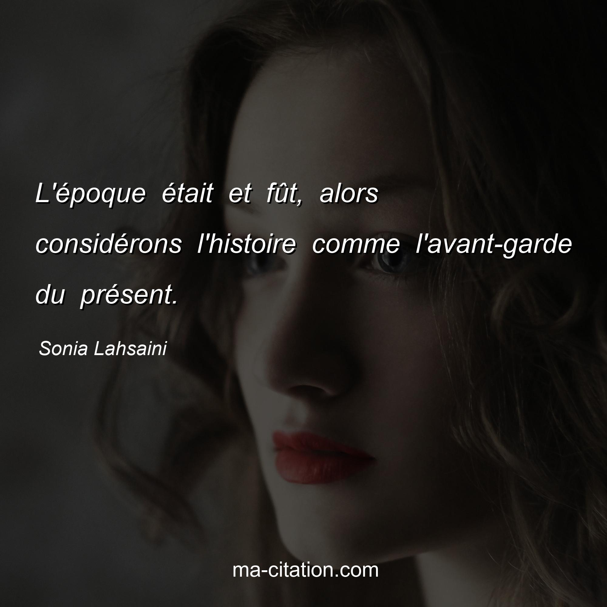 Citation sur la vie de Sonia Lahsaini :L'époque était et fût, alors considérons l'histoire comme l'avant-garde du présent.