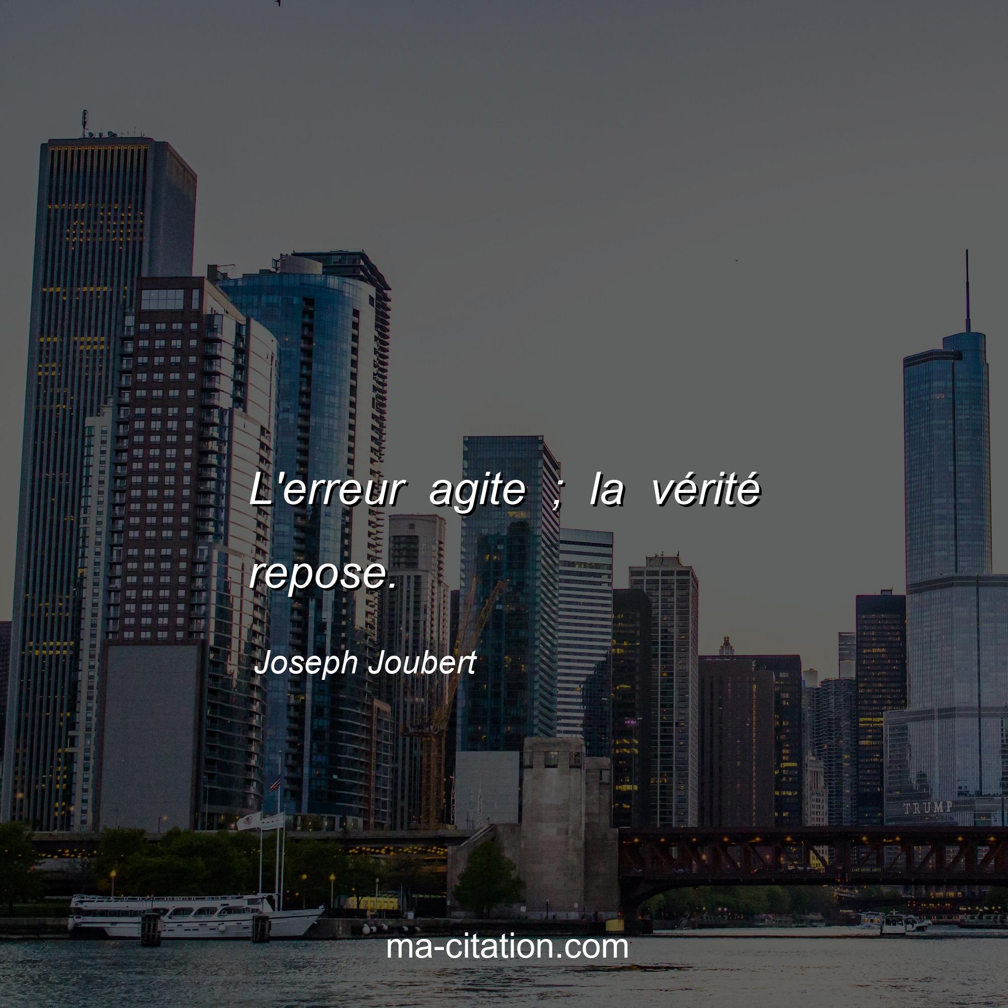 Joseph Joubert est l'auteur de la citation sur la vie "L'erreur agite ; la vérité repose.".