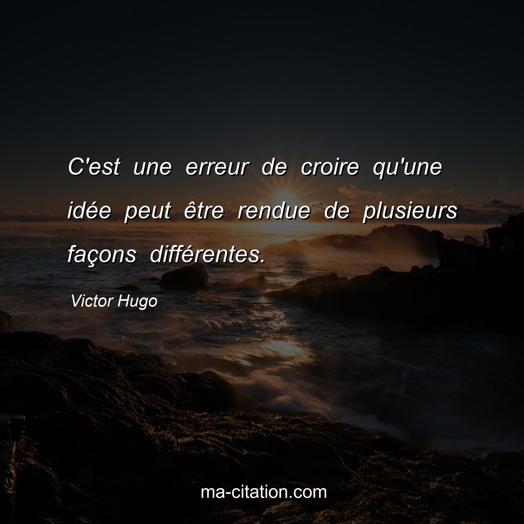 Citation sur la vie de Victor Hugo :C'est une erreur de croire qu'une idée peut être rendue de plusieurs façons différentes.