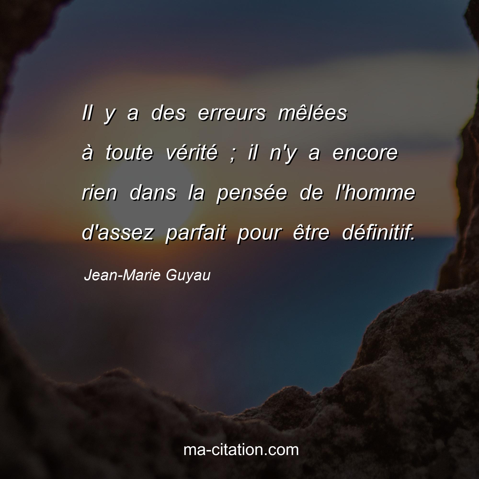 Citation sur la vie de Jean-Marie Guyau :Il y a des erreurs mêlées à toute vérité ; il n'y a encore rien dans la pensée de l'homme d'assez parfait pour être définitif.