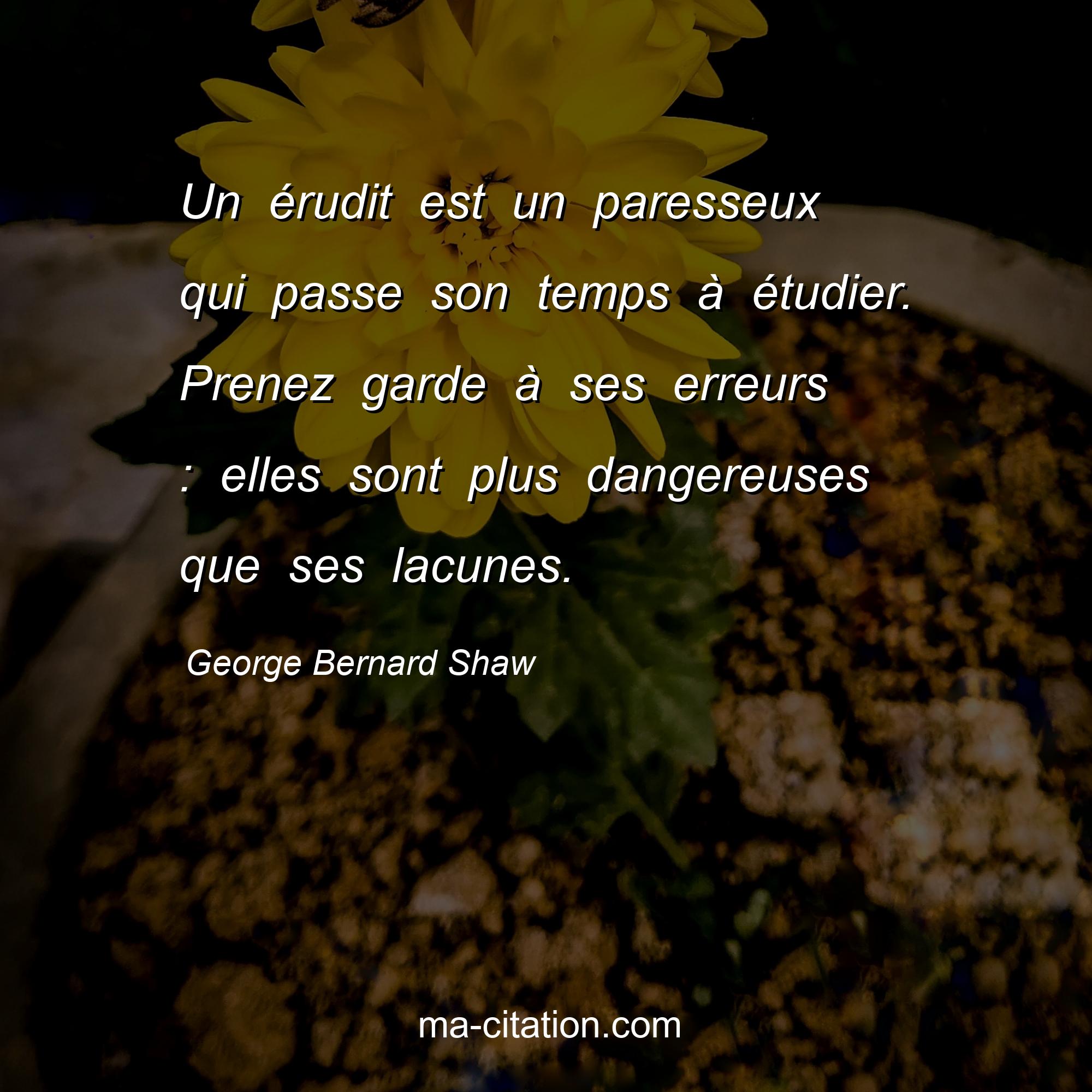 Citation sur la vie de George Bernard Shaw :Un érudit est un paresseux qui passe son temps à étudier. Prenez garde à ses erreurs : elles sont plus dangereuses que ses lacunes.