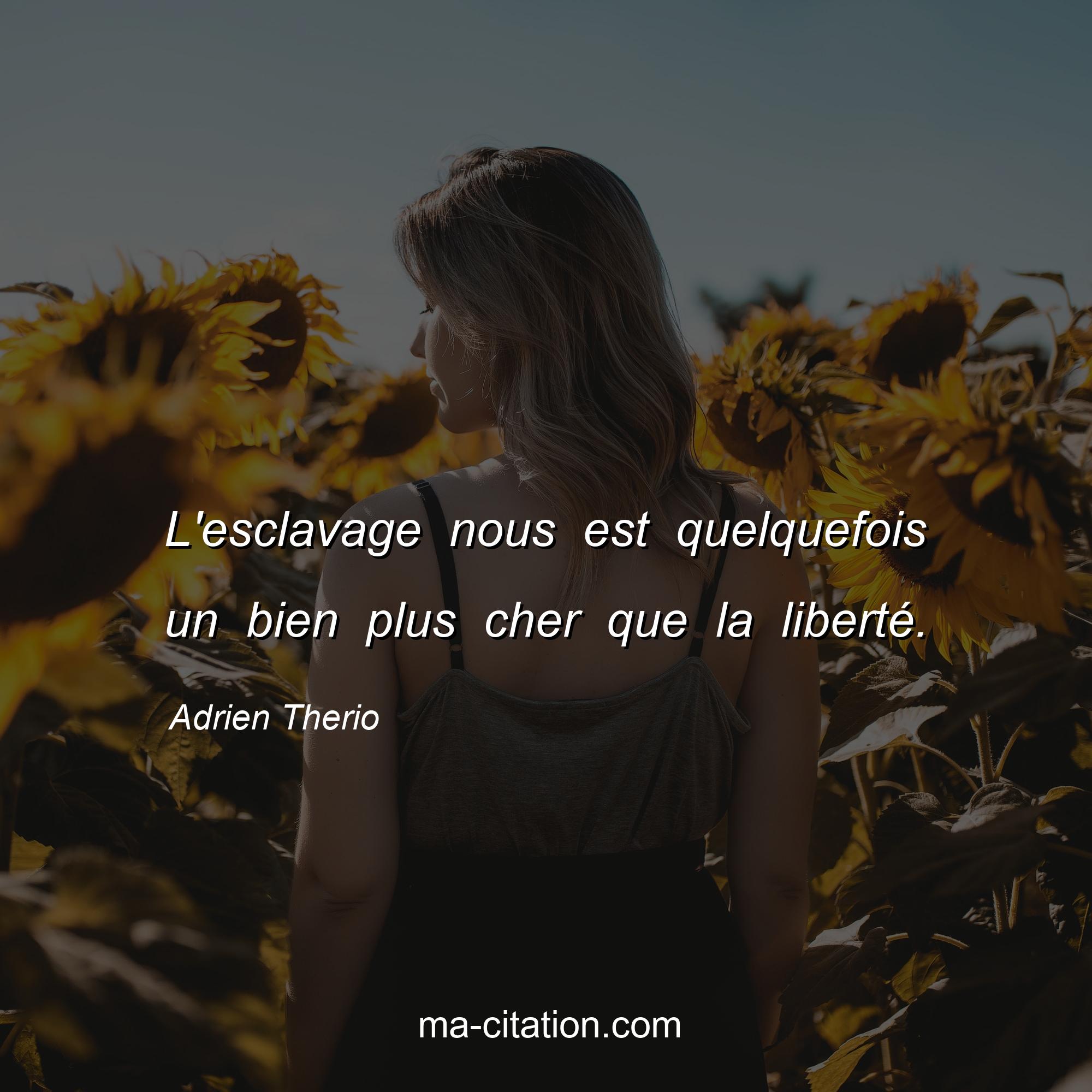 Citation sur la vie d'Adrien Therio :L'esclavage nous est quelquefois un bien plus cher que la liberté.