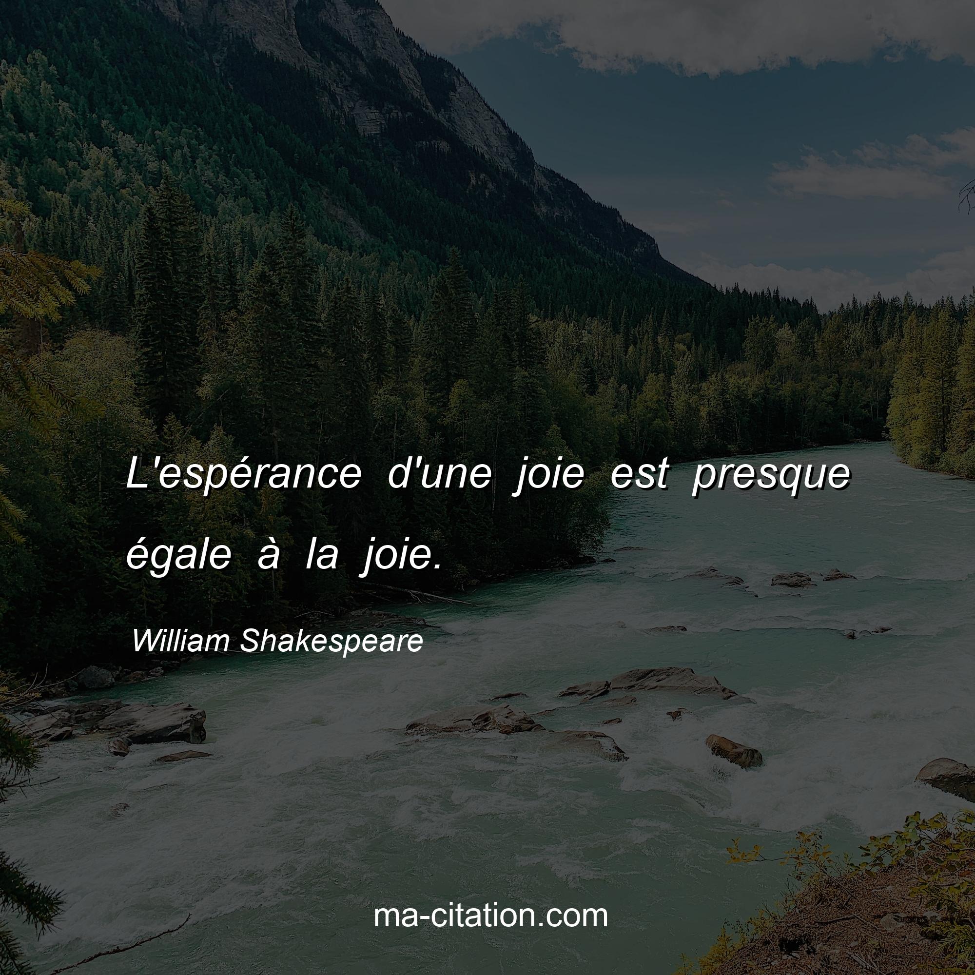 William Shakespeare est l'auteur de la citation sur la vie "L'espérance d'une joie est presque égale à la joie.".