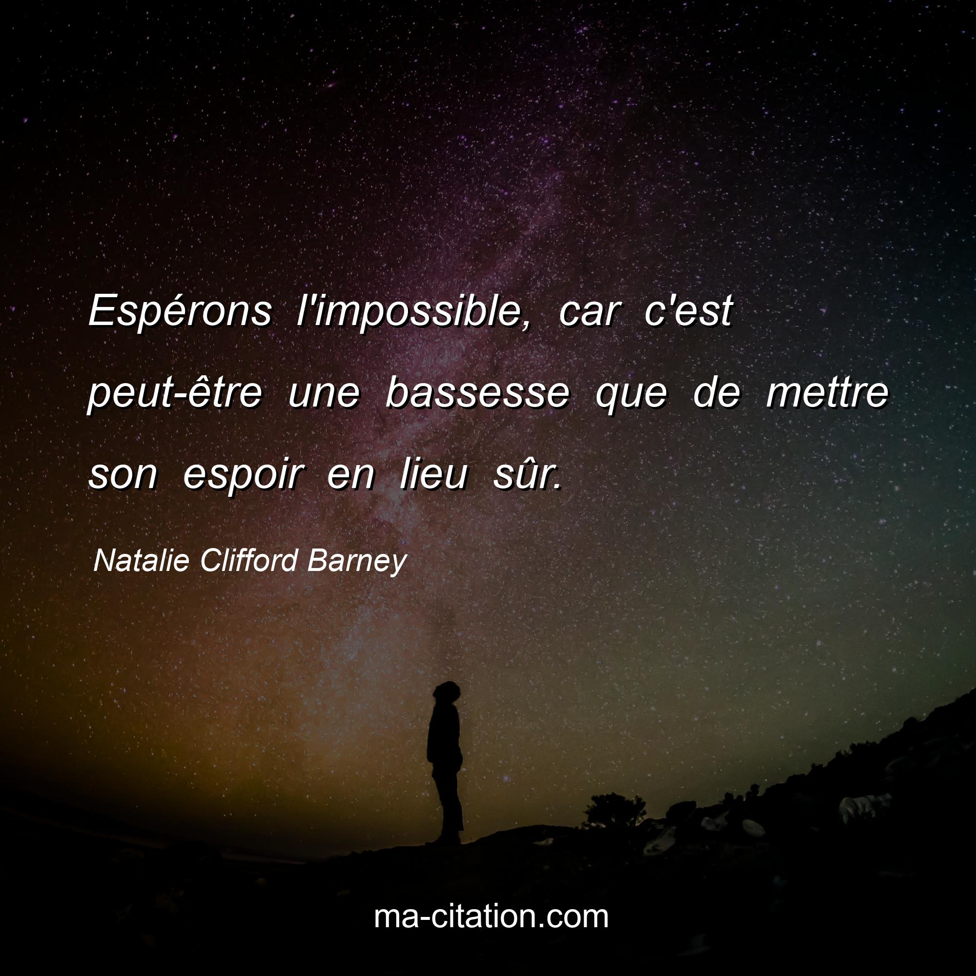 Citation sur la vie de Natalie Clifford Barney :Espérons l'impossible, car c'est peut-être une bassesse que de mettre son espoir en lieu sûr.