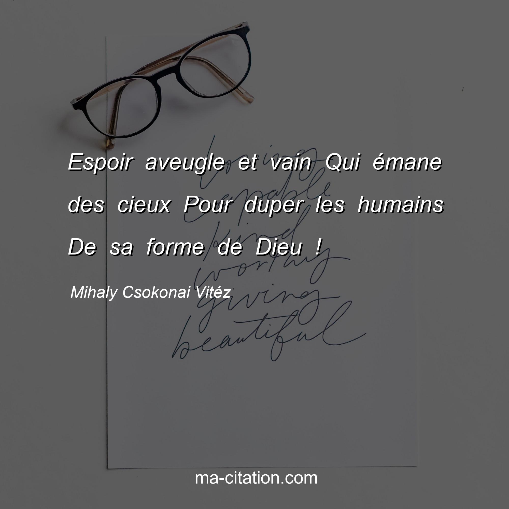 Citation sur la vie de Mihaly Csokonai Vitéz :Espoir aveugle et vain Qui émane des cieux Pour duper les humains De sa forme de Dieu !