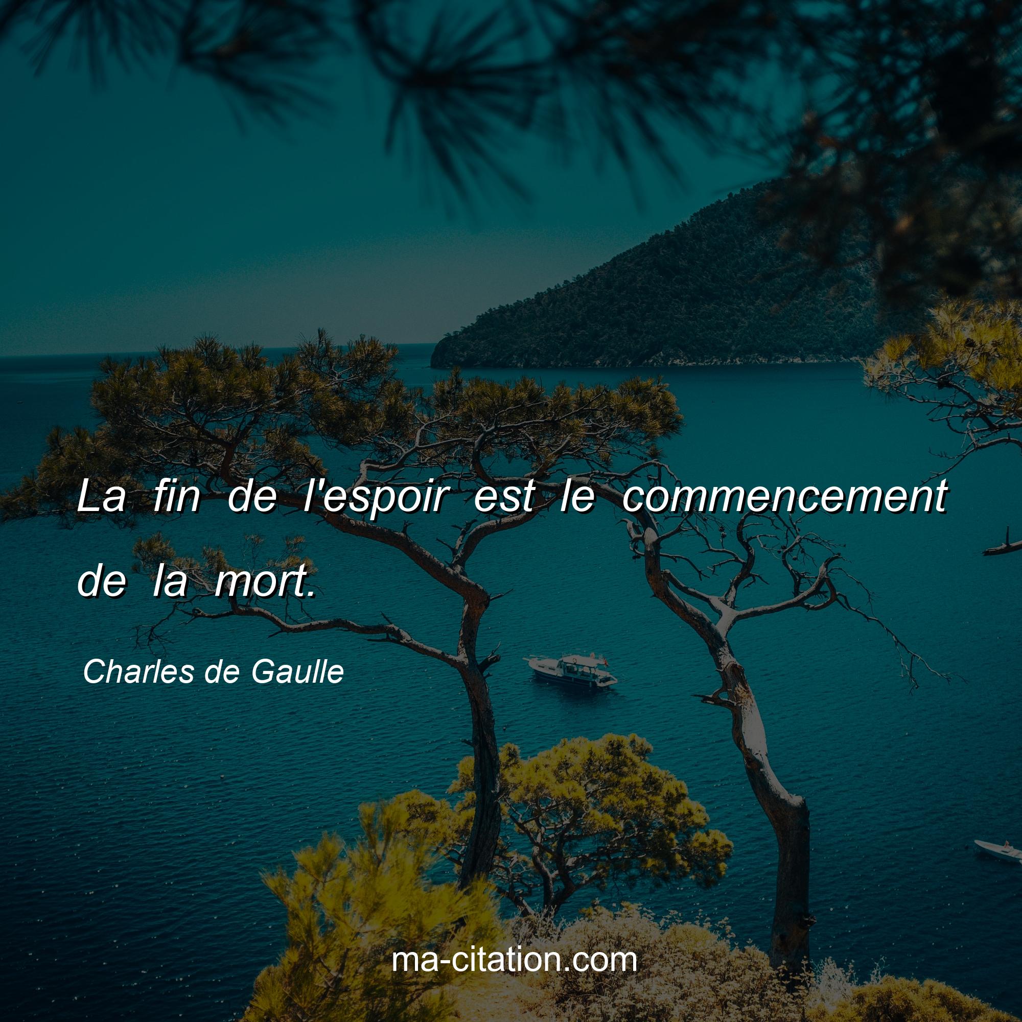 Citation sur la vie de Charles de Gaulle :La fin de l'espoir est le commencement de la mort.