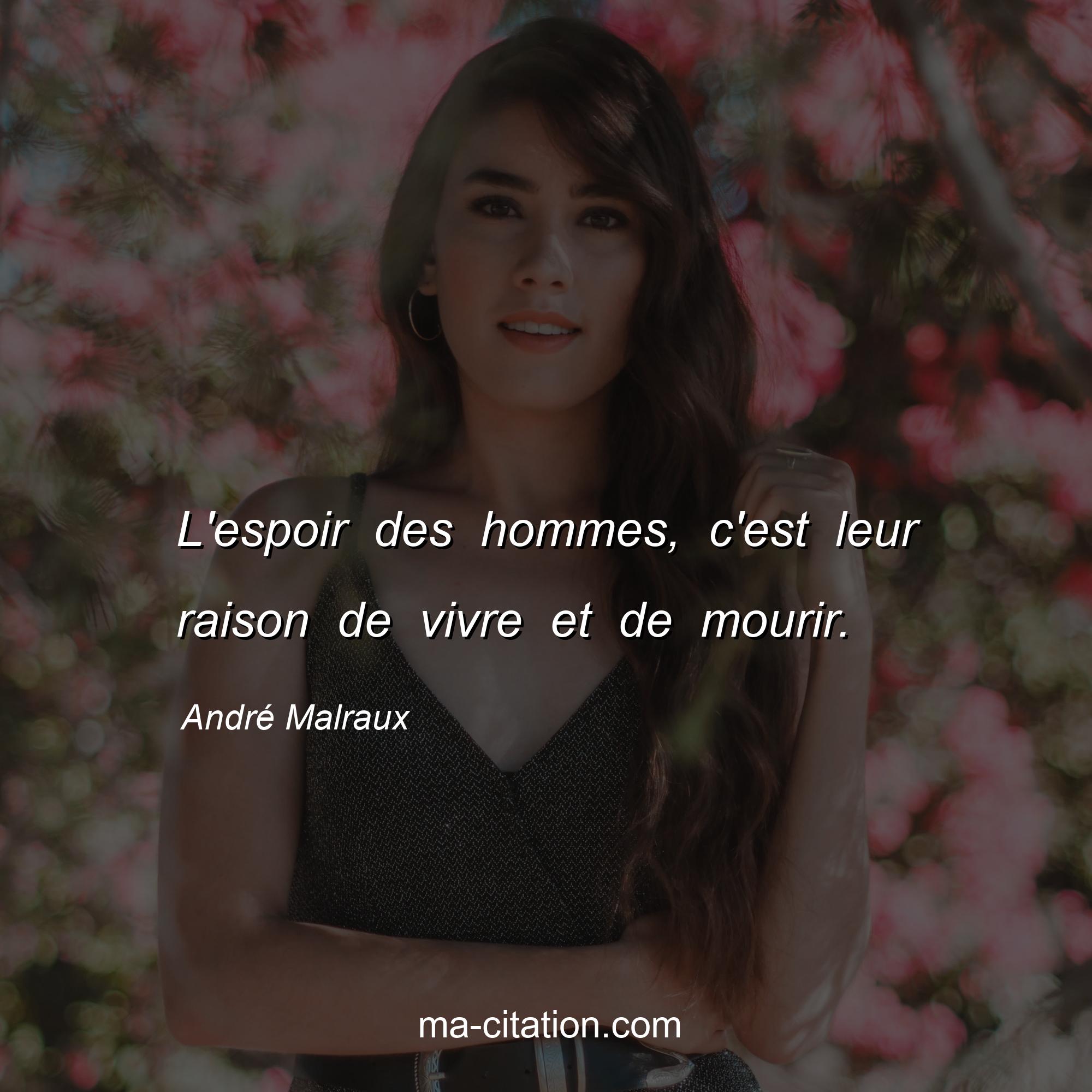 Citation sur la vie d'André Malraux :L'espoir des hommes, c'est leur raison de vivre et de mourir.