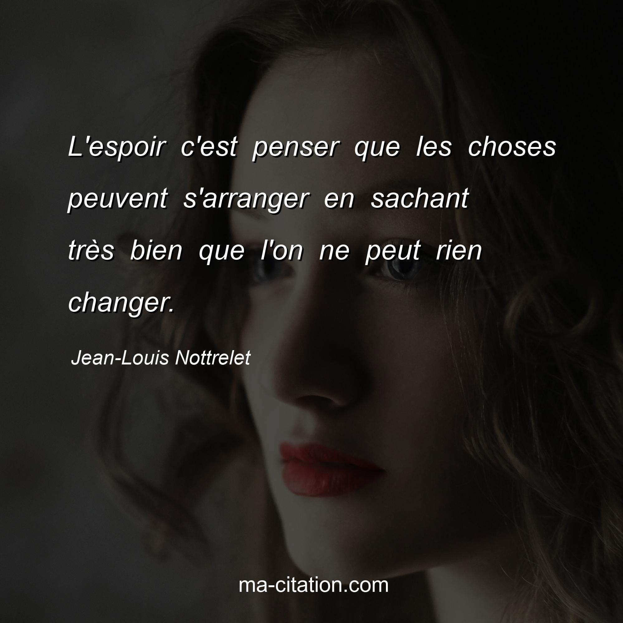 Citation sur la vie de Jean-Louis Nottrelet :L'espoir c'est penser que les choses peuvent s'arranger en sachant très bien que l'on ne peut rien changer.