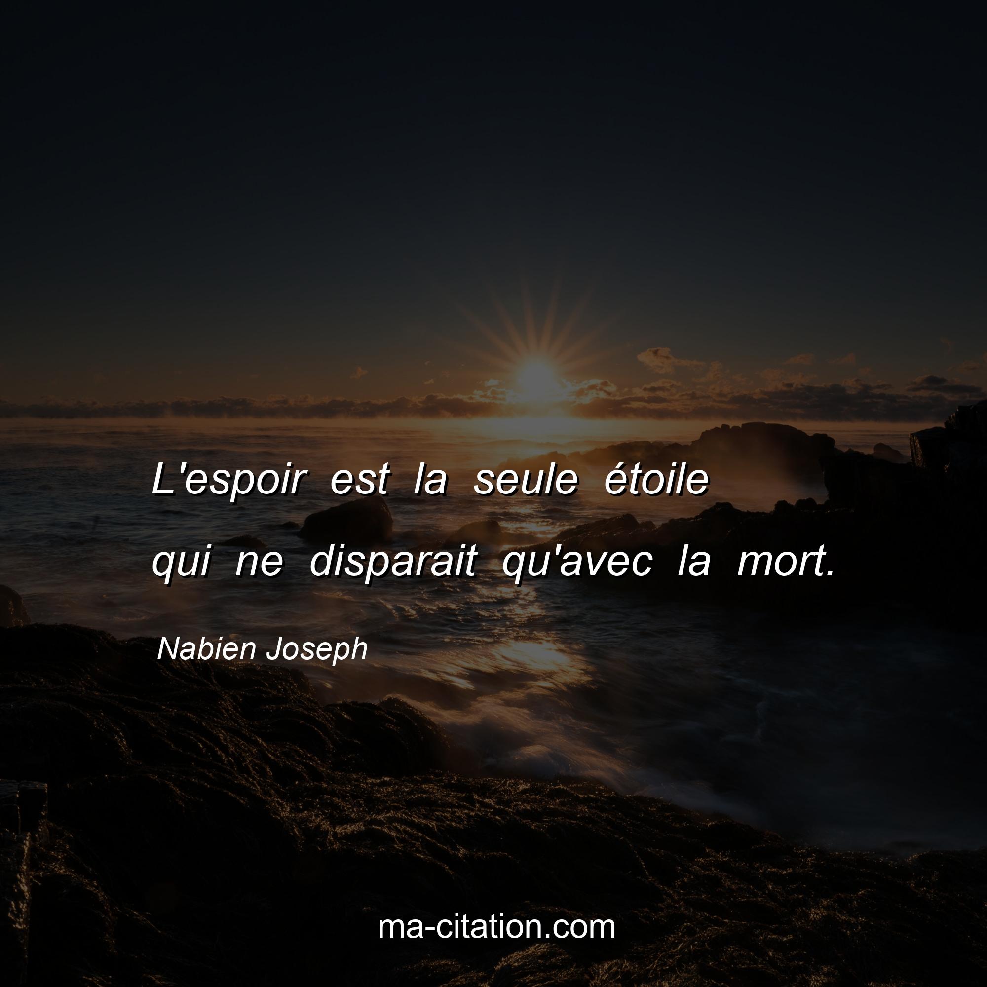 Nabien Joseph est l'auteur de la citation sur la vie "L'espoir est la seule étoile qui ne disparait qu'avec la mort.".