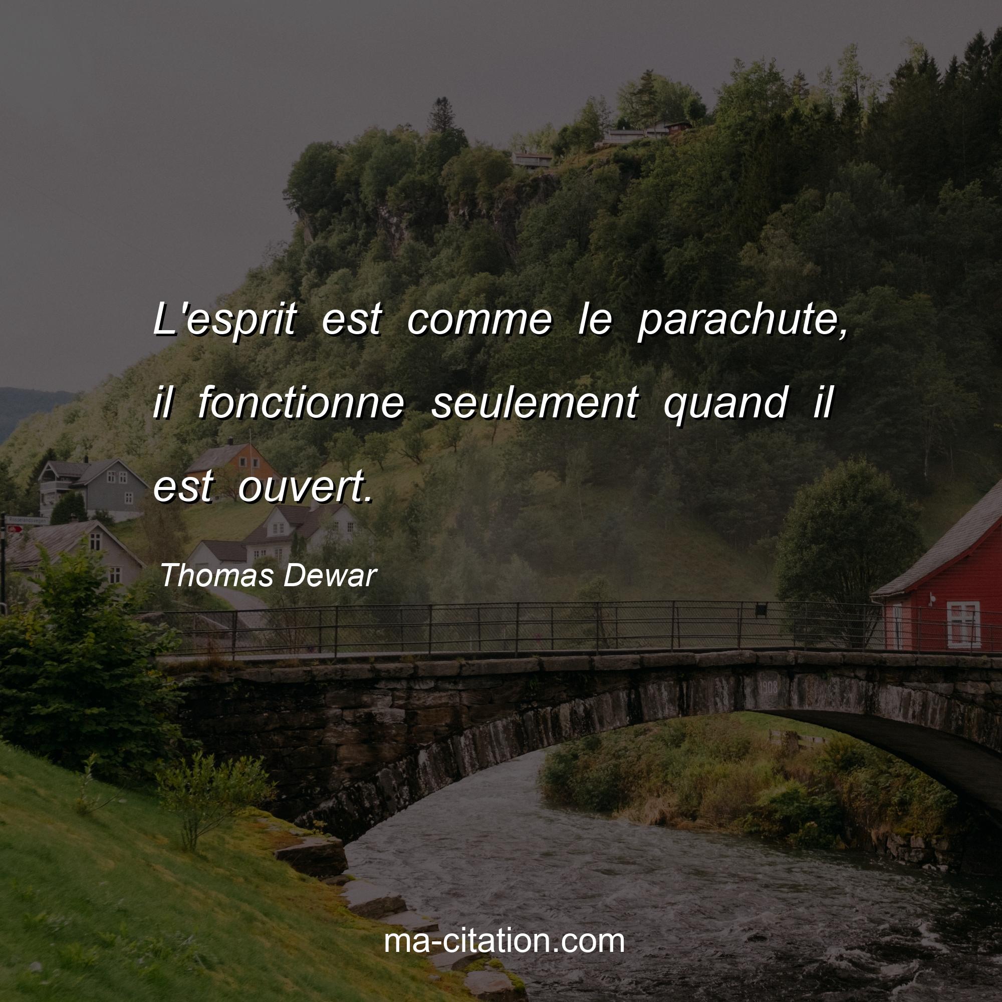 Citation sur la vie de Thomas Dewar :L'esprit est comme le parachute, il fonctionne seulement quand il est ouvert.