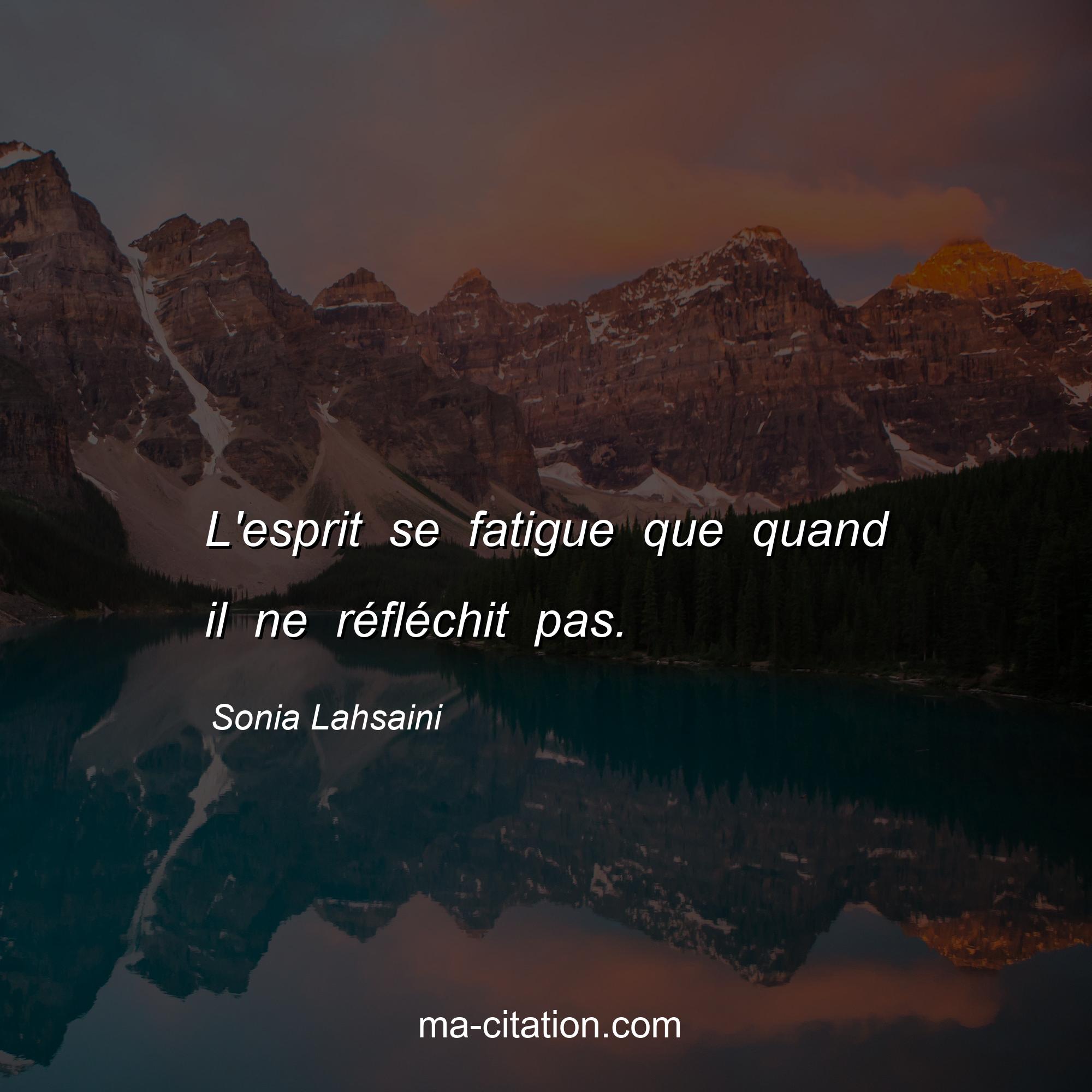 Citation sur la vie de Sonia Lahsaini :L'esprit se fatigue que quand il ne réfléchit pas.