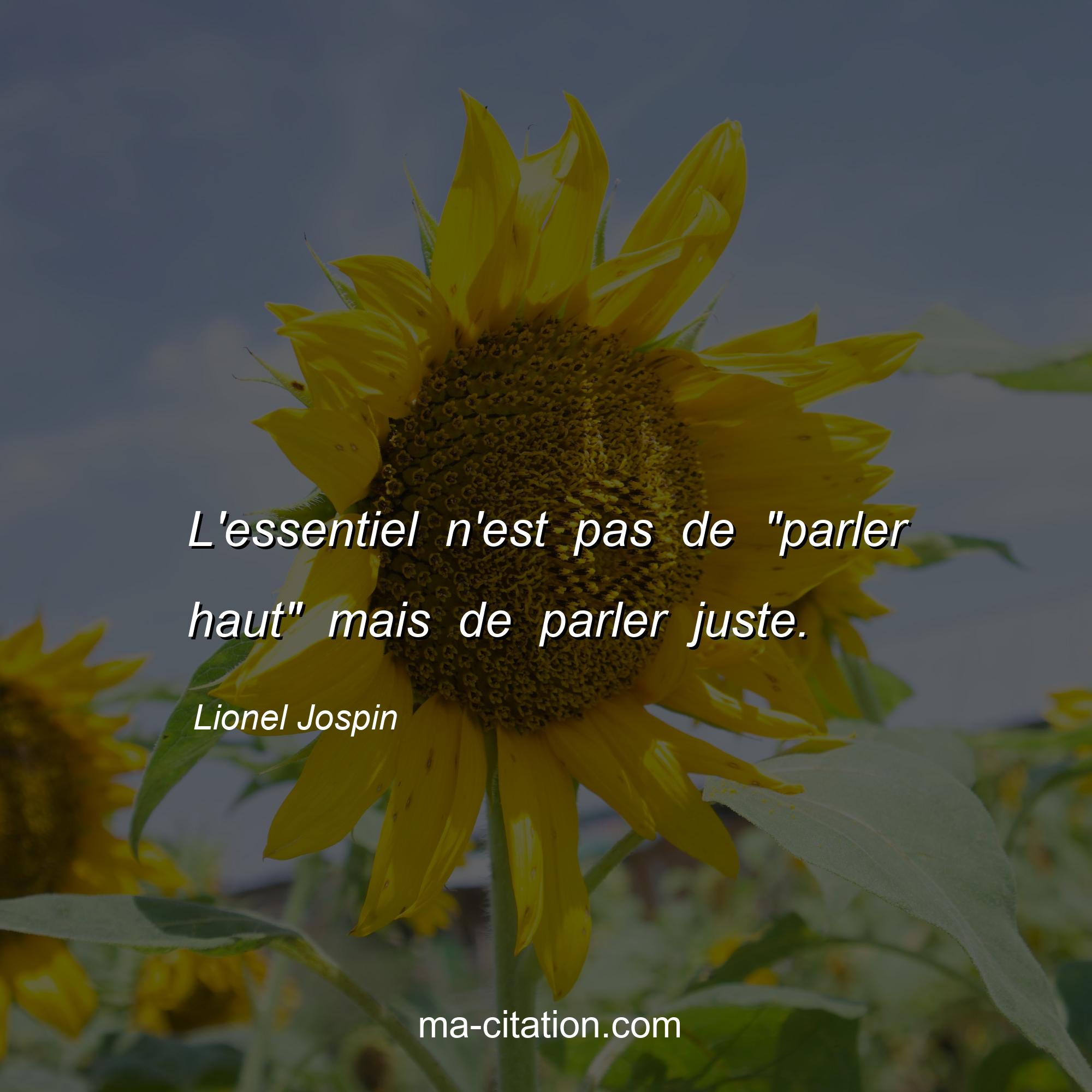 Lionel Jospin est l'auteur de la citation sur la vie "L'essentiel n'est pas de "parler haut" mais de parler juste.".