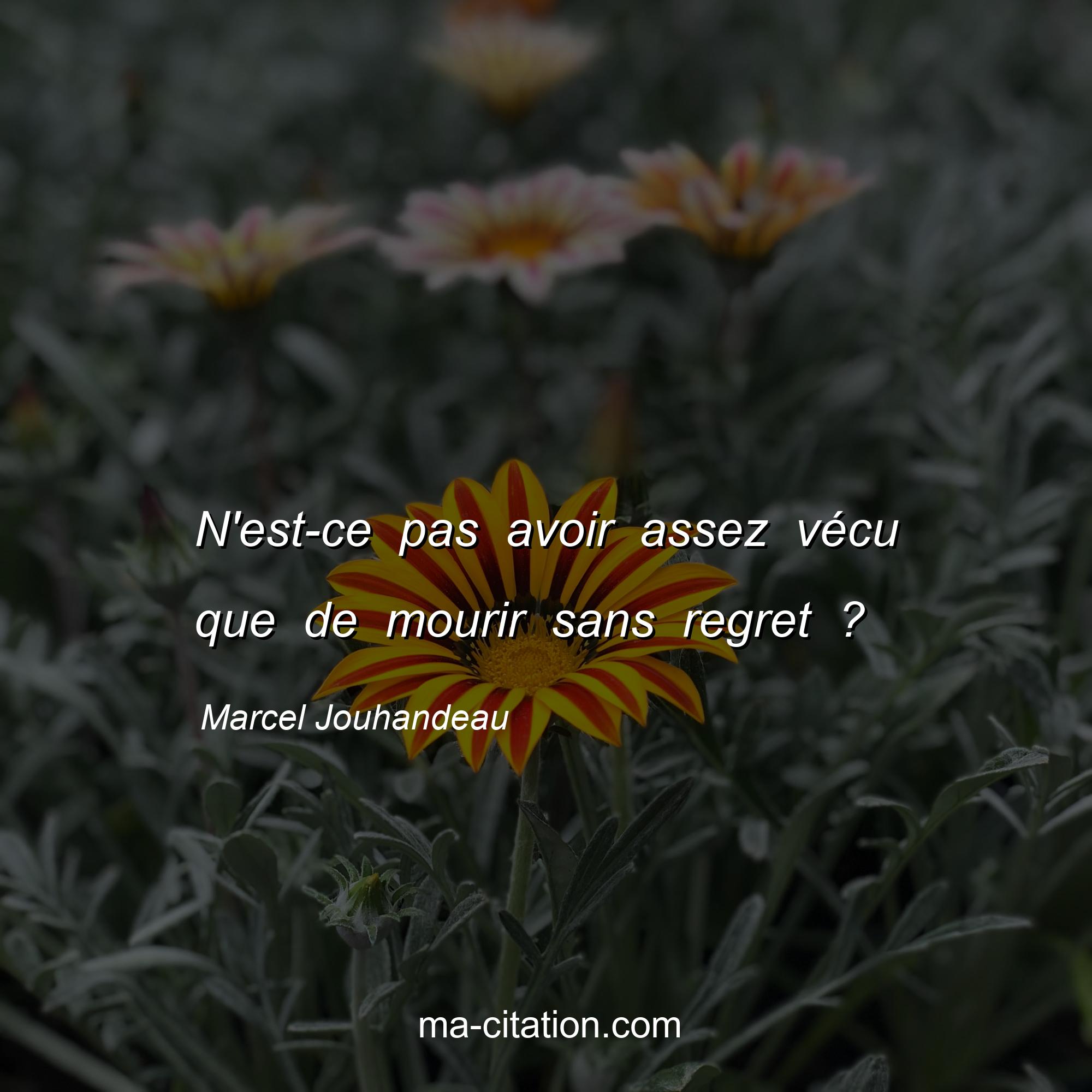Citation sur la vie de Marcel Jouhandeau :N'est-ce pas avoir assez vécu que de mourir sans regret ?