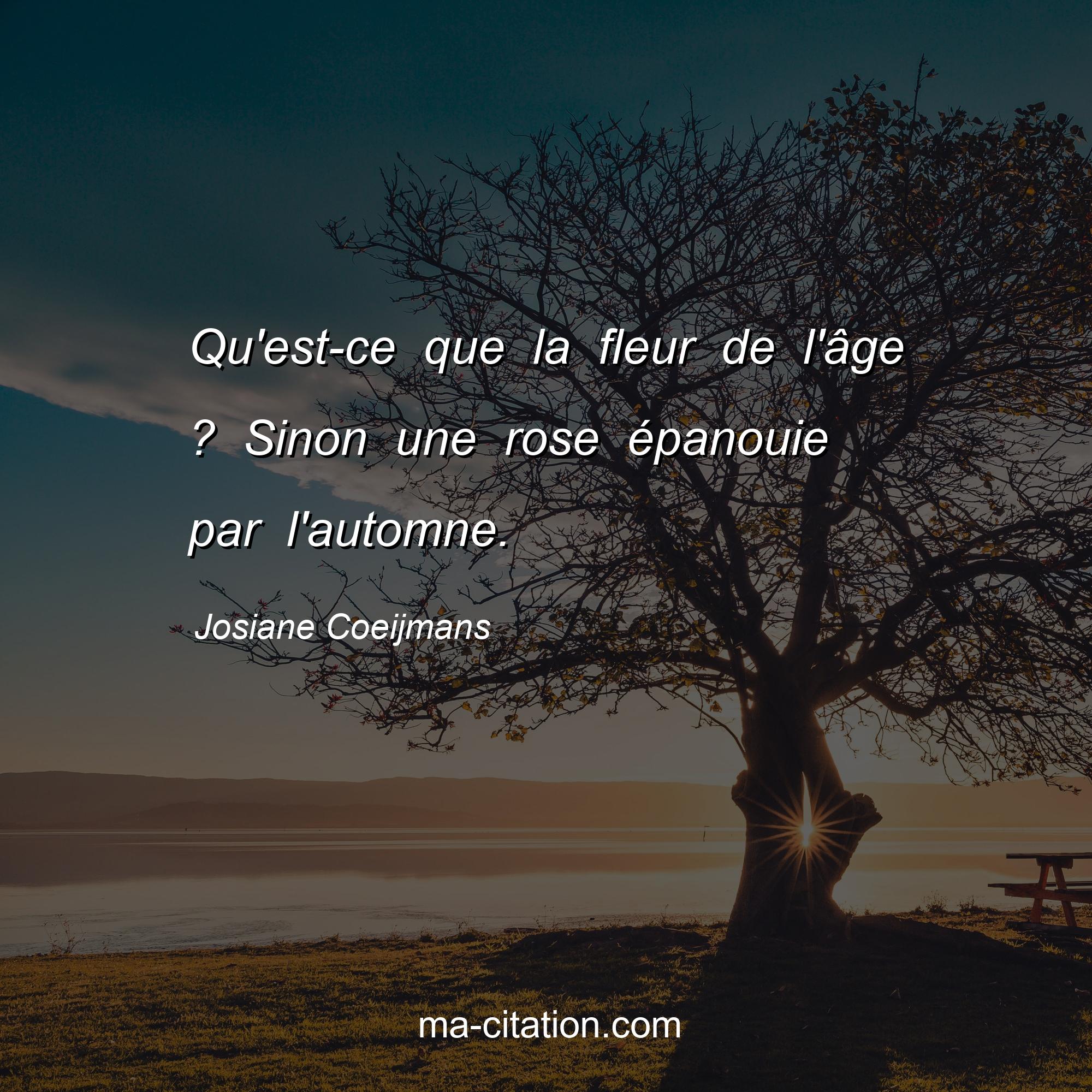 Citation sur la vie de Josiane Coeijmans :Qu'est-ce que la fleur de l'âge ? Sinon une rose épanouie par l'automne.
