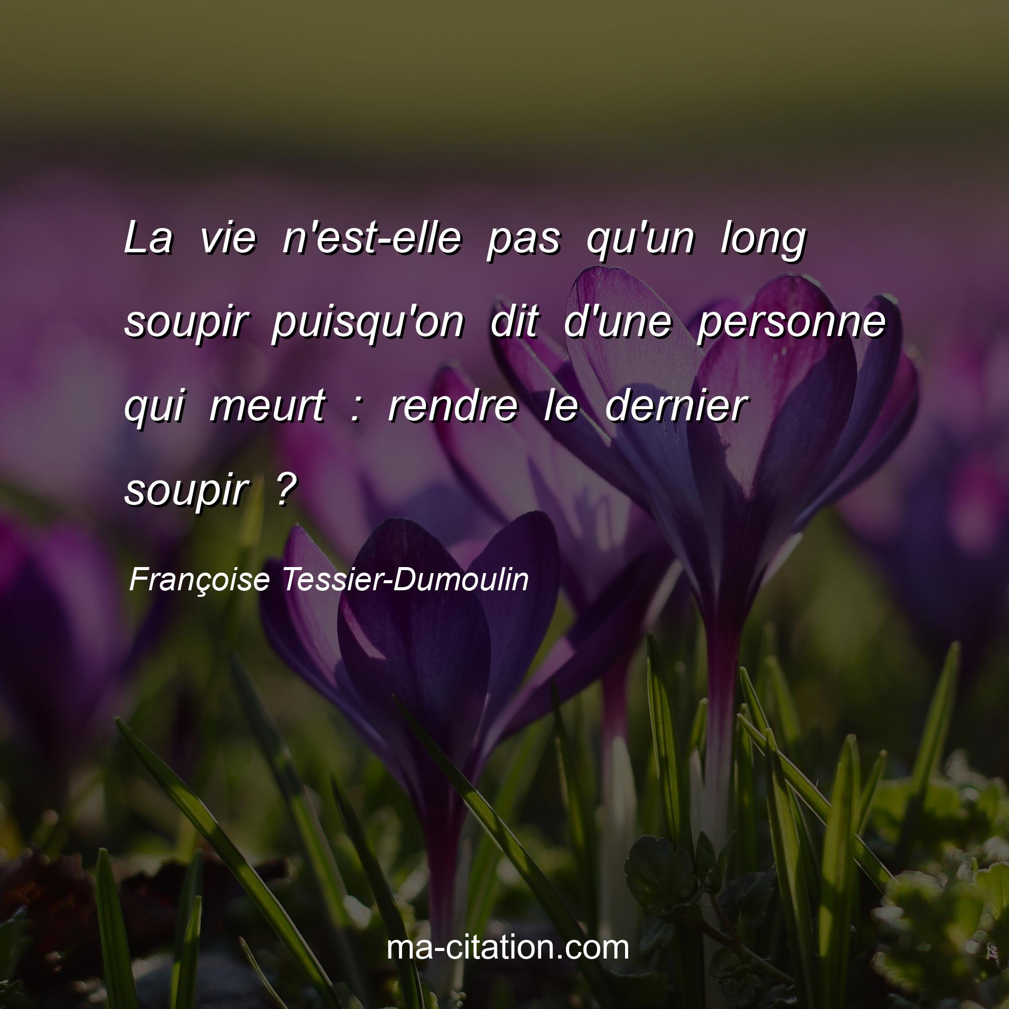 Françoise Tessier-Dumoulin est l'auteur de la citation sur la vie "La vie n'est-elle pas qu'un long soupir puisqu'on dit d'une personne qui meurt : rendre le dernier soupir ?".