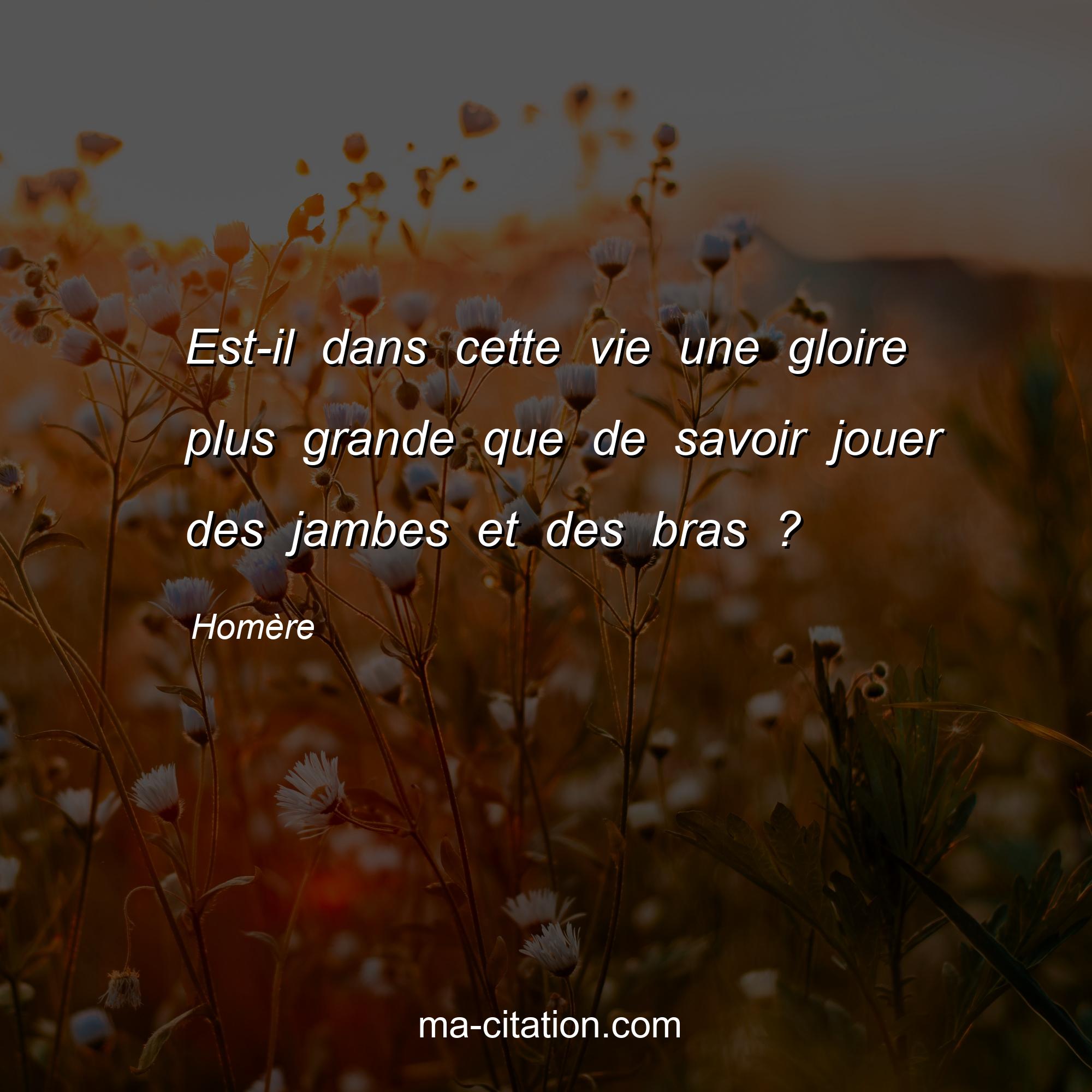 Citation sur la vie de Homère :Est-il dans cette vie une gloire plus grande que de savoir jouer des jambes et des bras ?