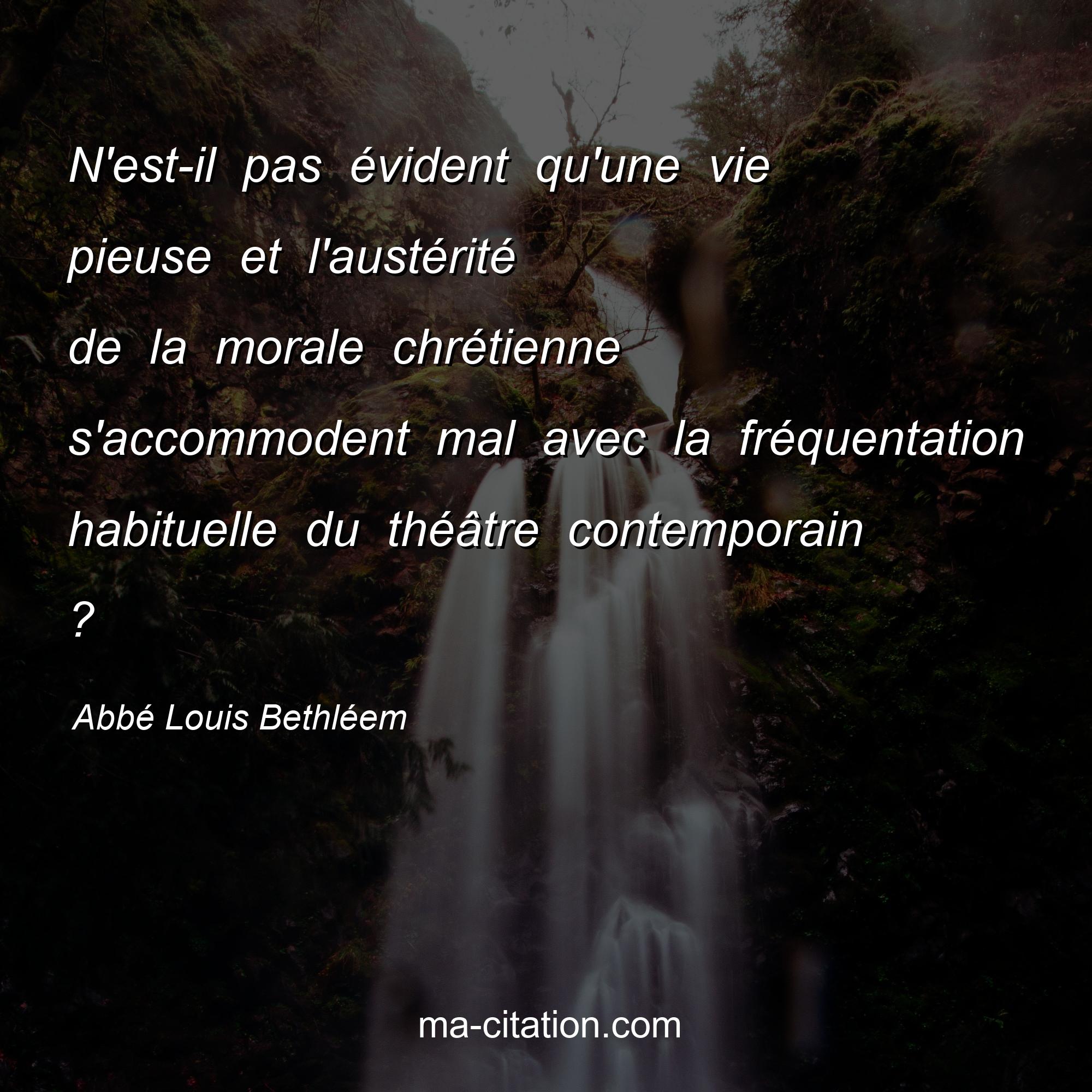 Citation sur la vie d'Abbé Louis Bethléem :N'est-il pas évident qu'une vie pieuse et l'austérité de la morale chrétienne s'accommodent mal avec la fréquentation habituelle du théâtre contemporain ?