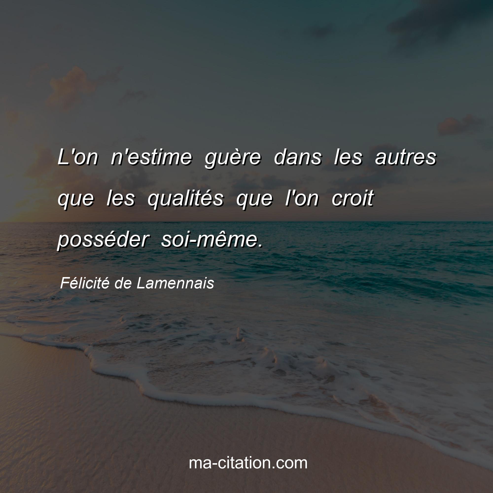 Citation sur la vie de Félicité de Lamennais :L'on n'estime guère dans les autres que les qualités que l'on croit posséder soi-même.