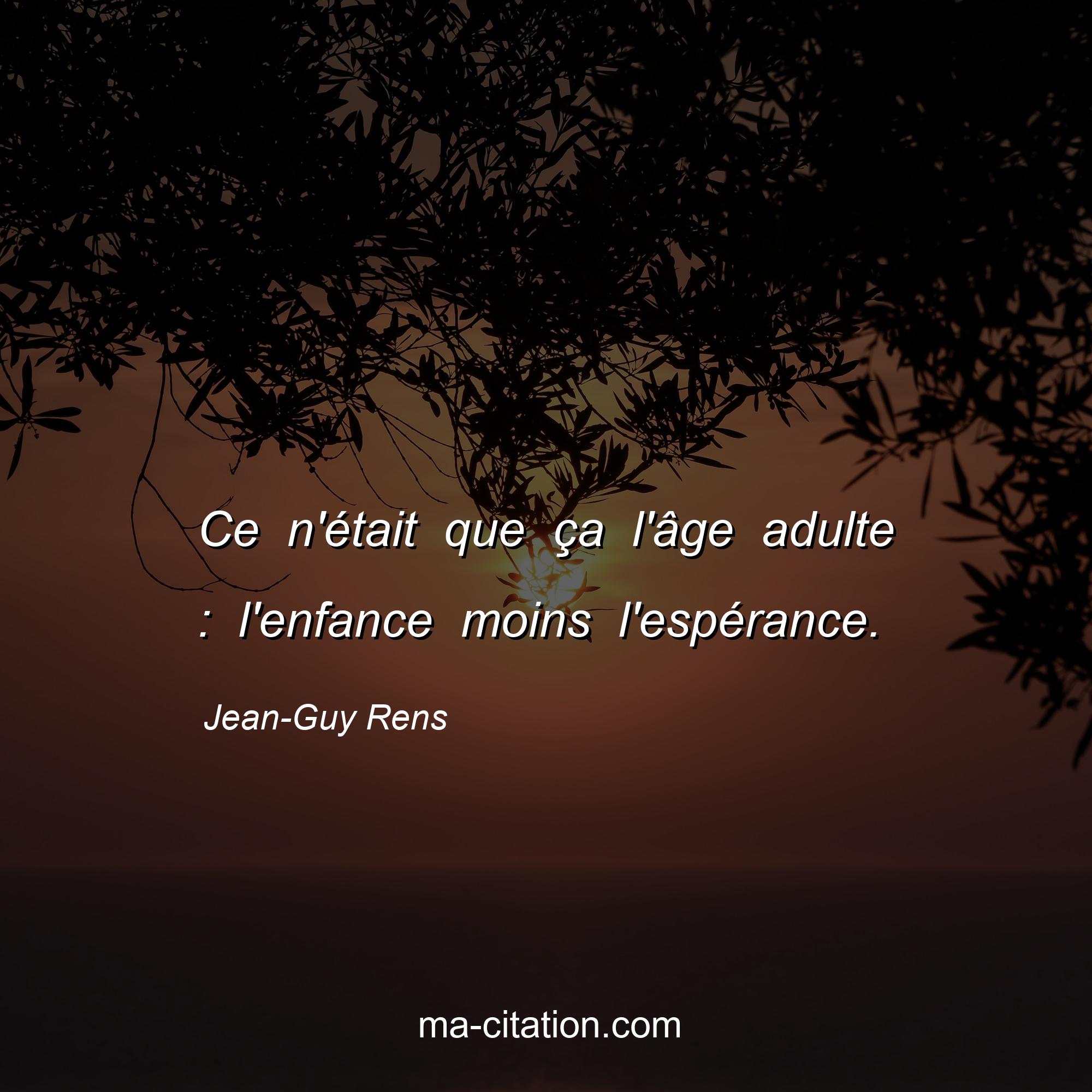 Jean-Guy Rens est l'auteur de la citation sur la vie "Ce n'était que ça l'âge adulte : l'enfance moins l'espérance.".